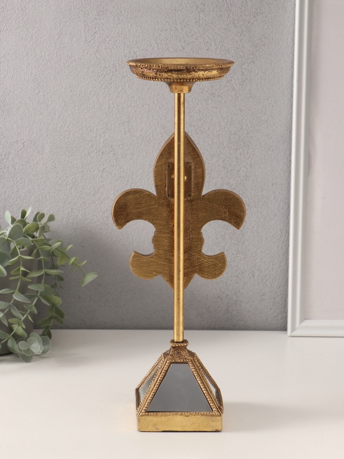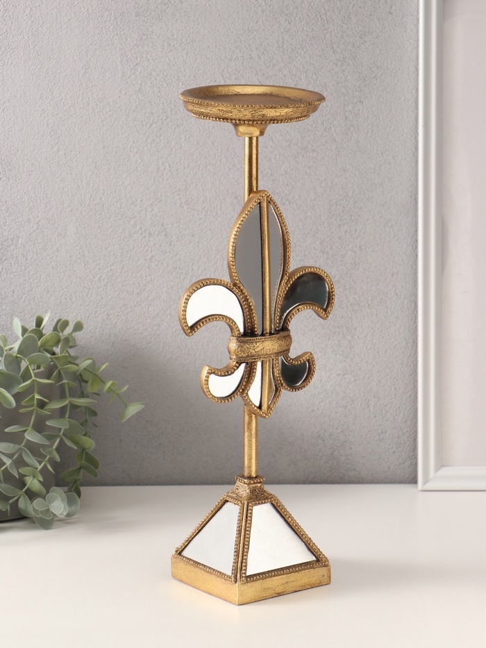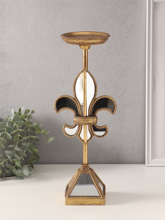 Подсвечник полистоун на 1 свечу "Зеркальная геральдическая лилия" 14х11х38,5 см