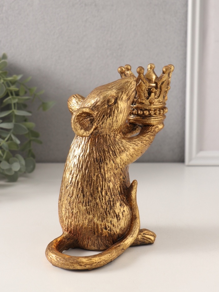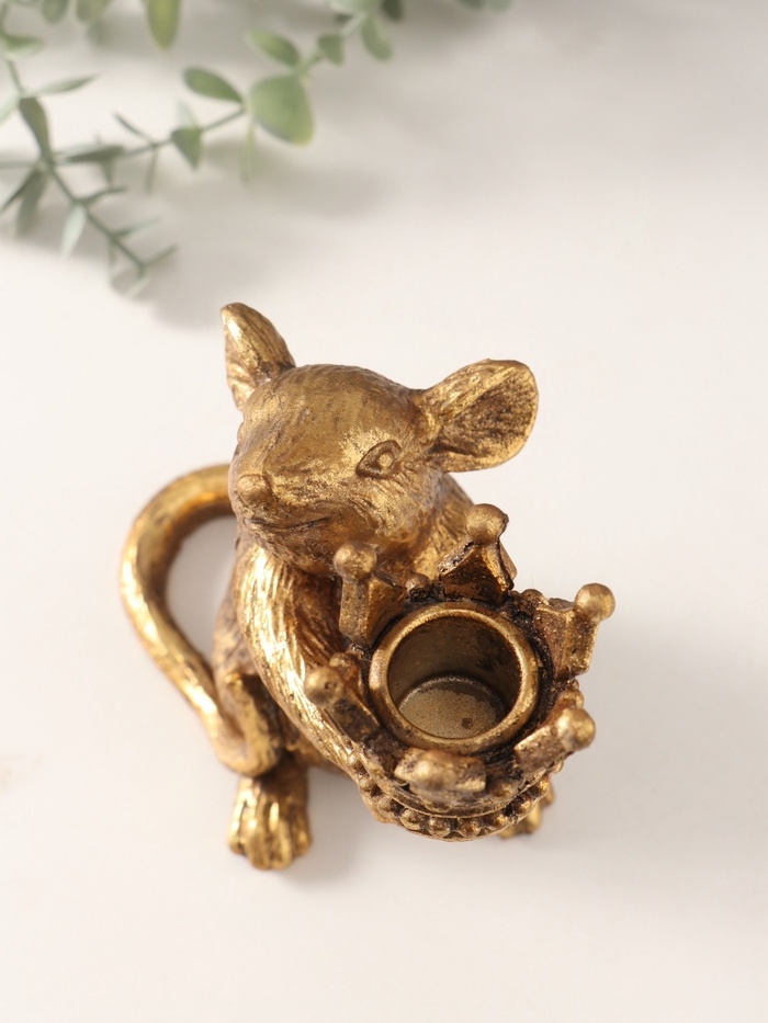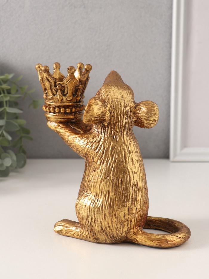 Подсвечник полистоун на 1 свечу "Мышка с короной в руках" золото 15,5х8х15,5 см