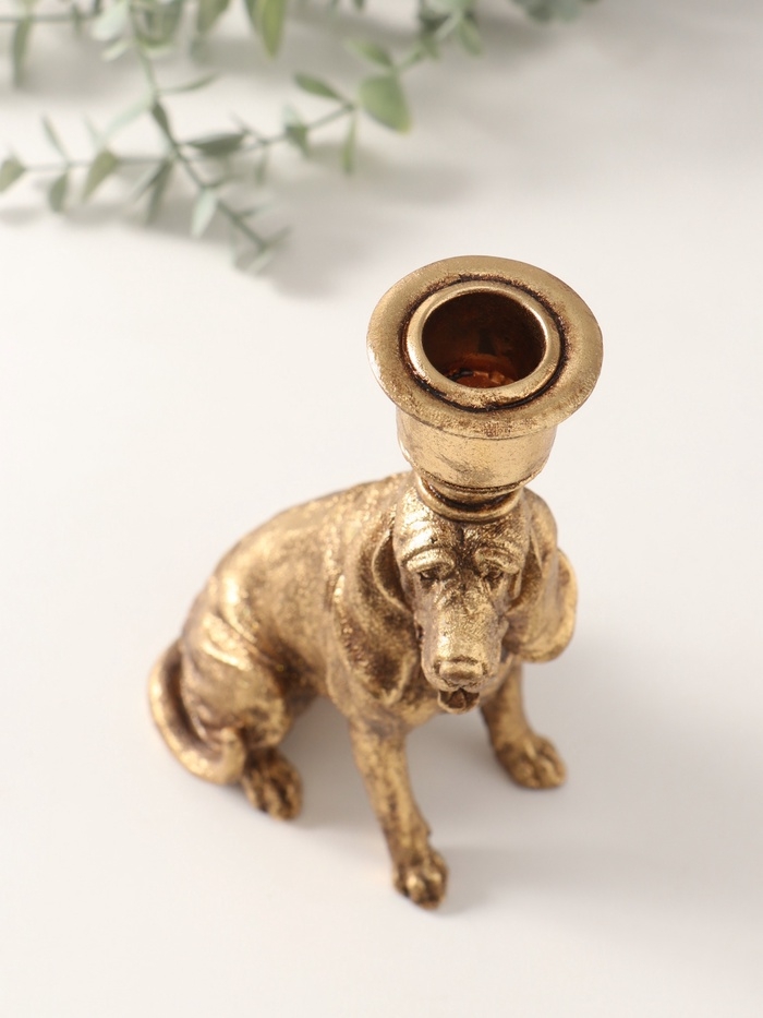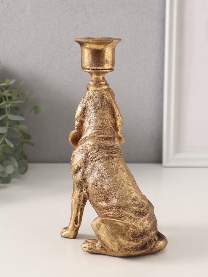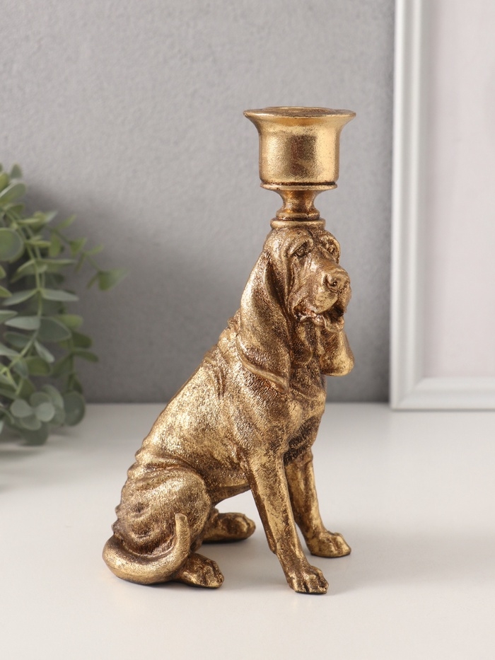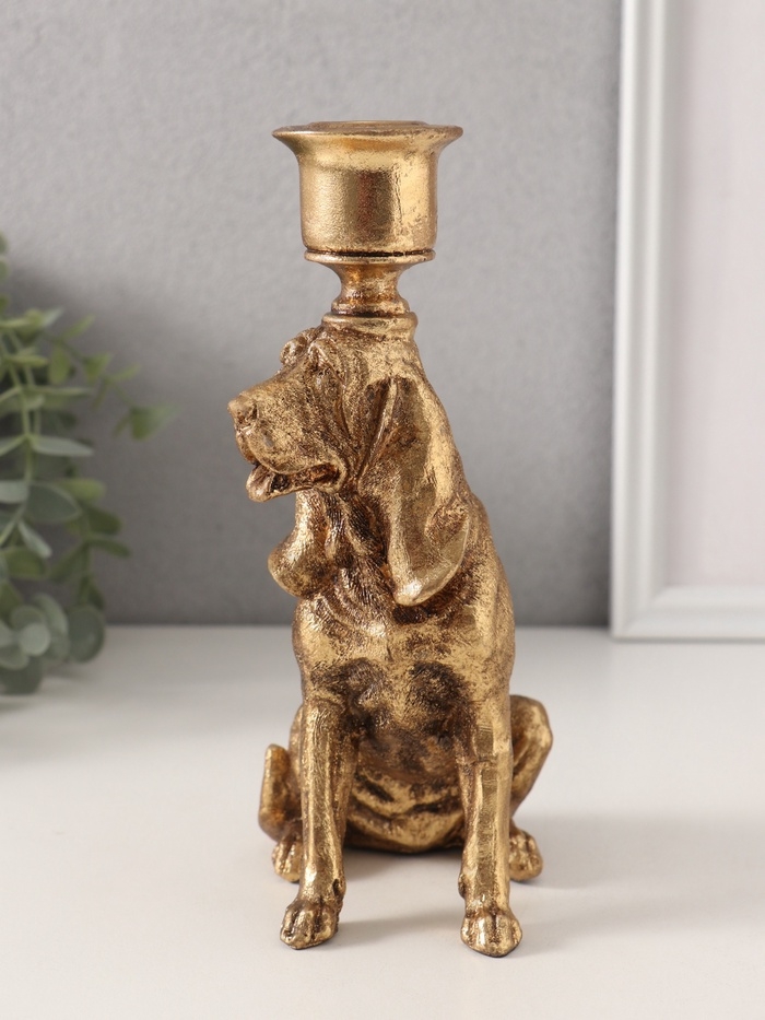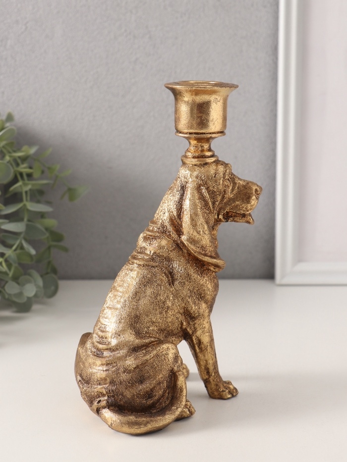 Подсвечник полистоун на 1 свечу "Бладхаунд" золото 11х8х19,5 см