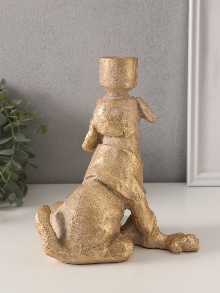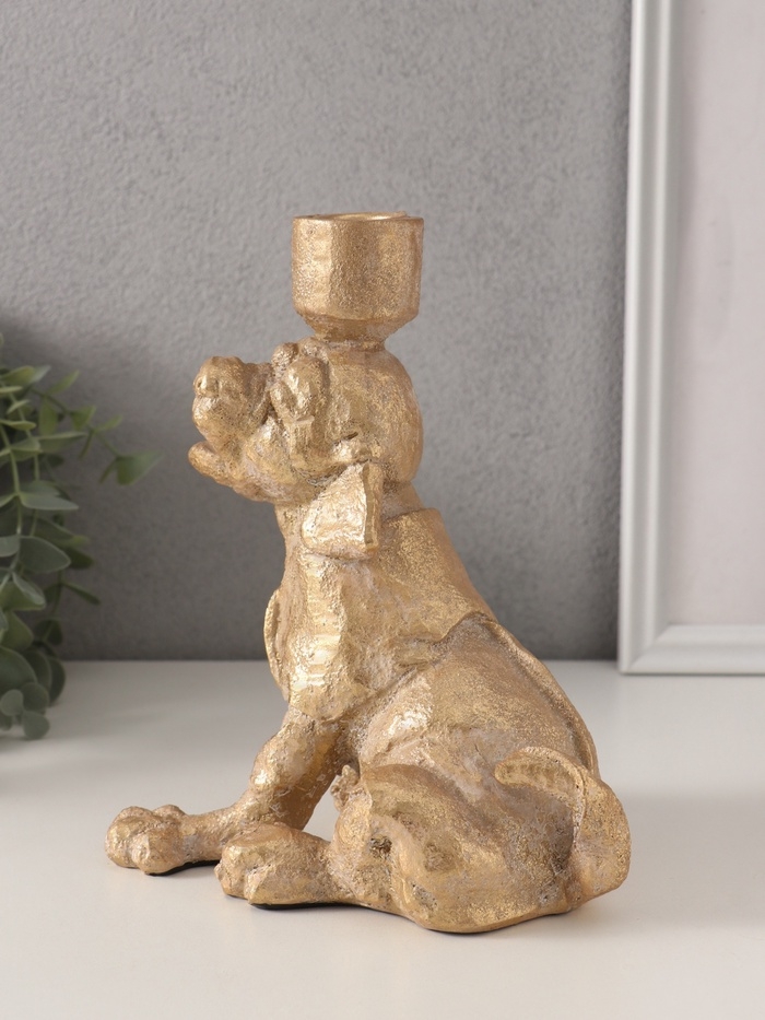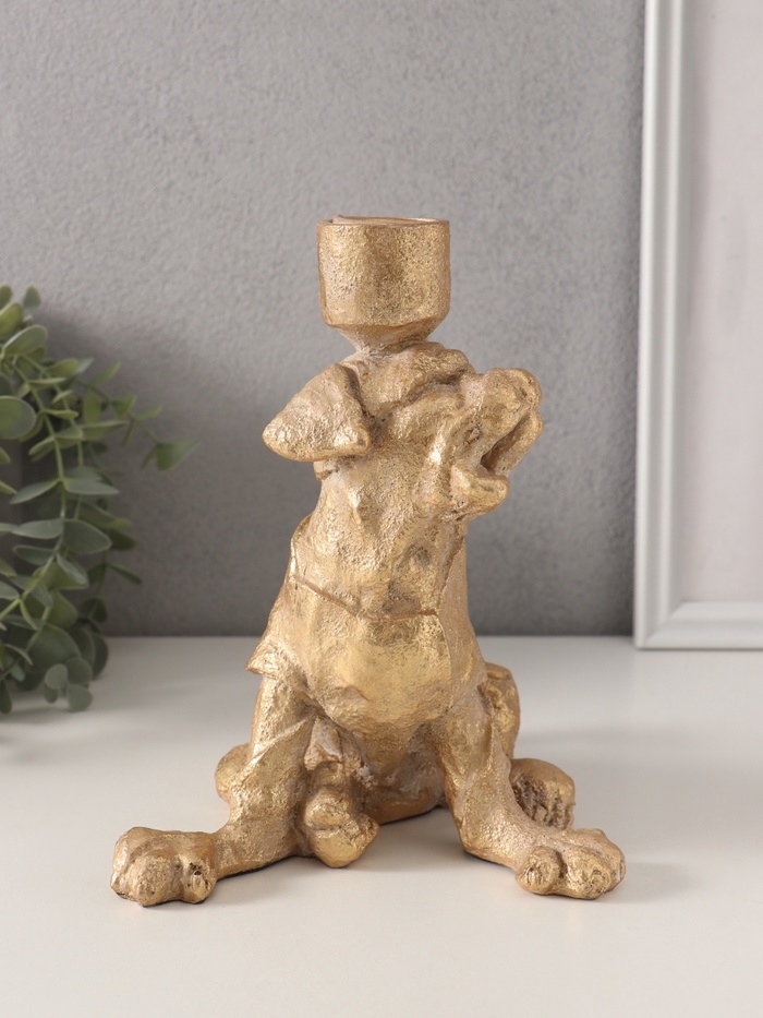 Подсвечник полистоун на 1 свечу "Шарж. Зевающий щенок" золото 15,8х15,3х20 см