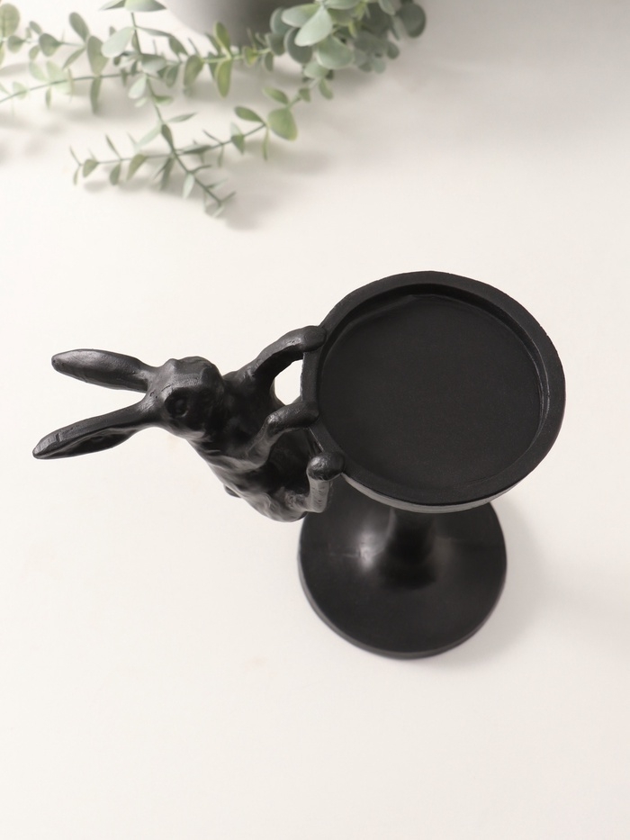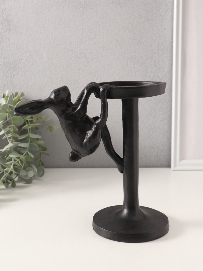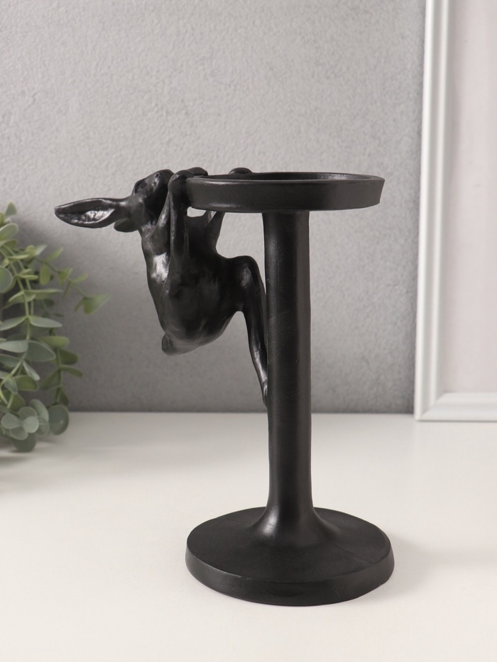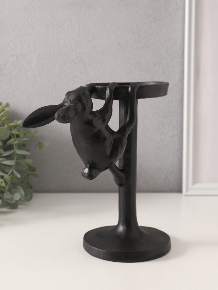 Подсвечник полистоун на 1 свечу "Мартовский заяц" чёрный 20х10,5х19,5 см