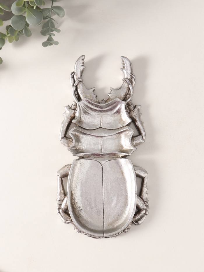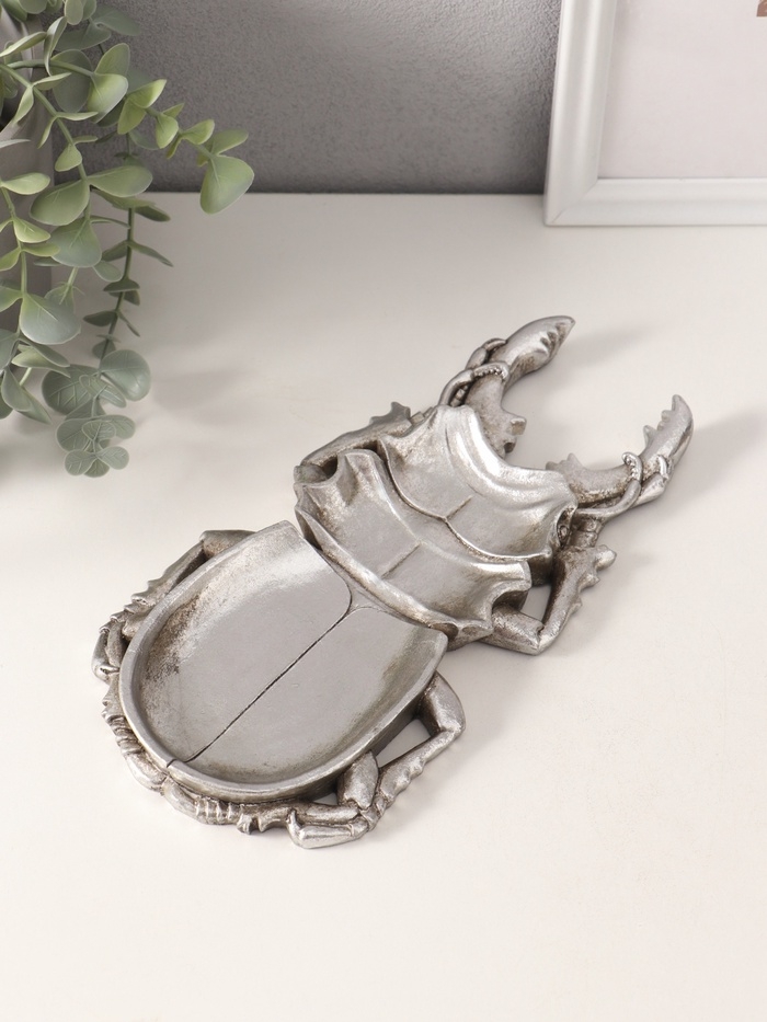 Подставка интерьерная полистоун "Жук-олень" серебро 25х13х2 см