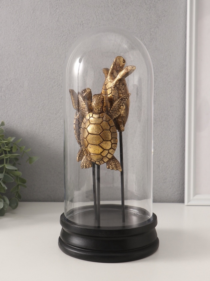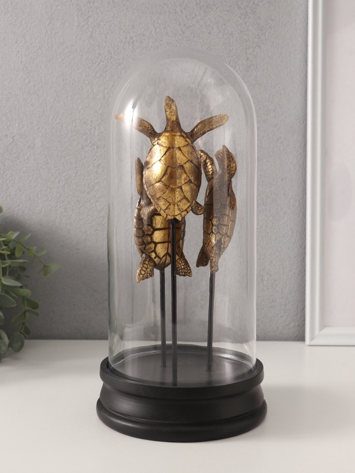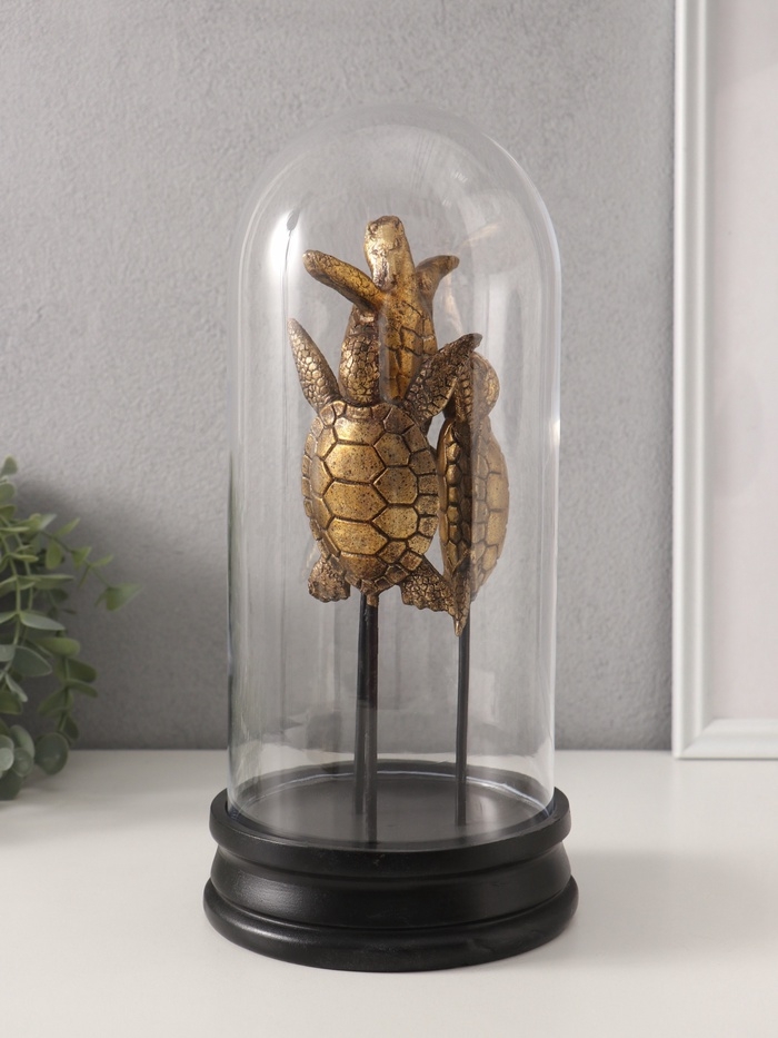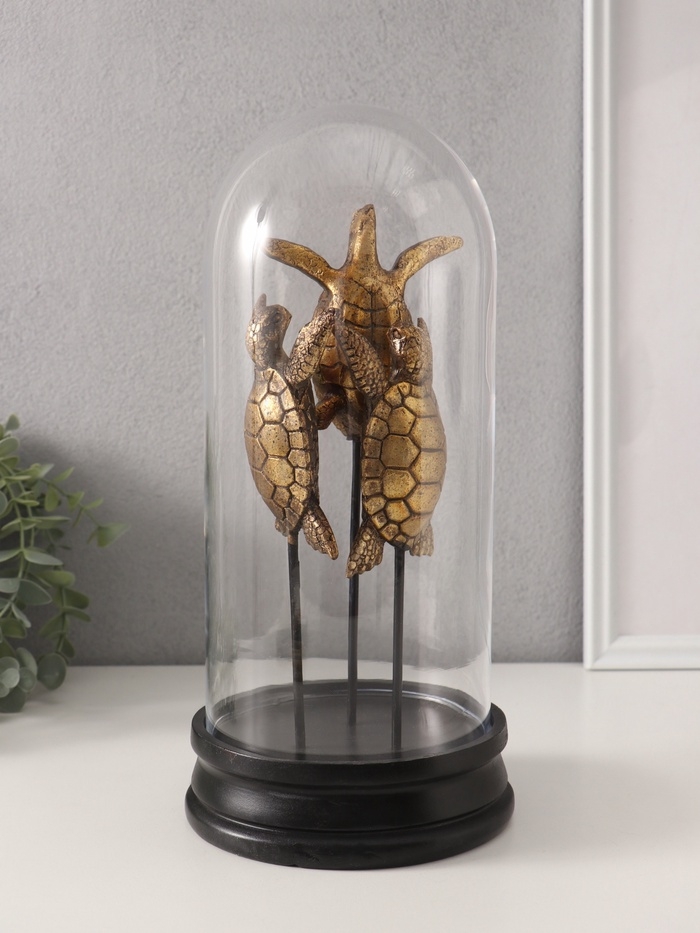 Сувенир полистоун в колбе "Три черепахи в море" 14х14х30 см