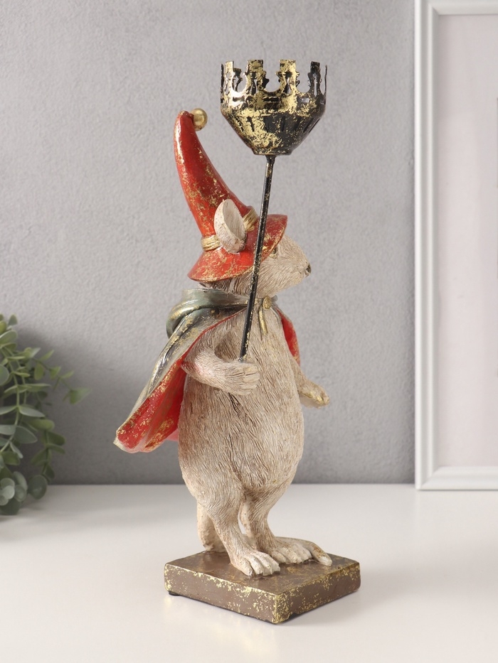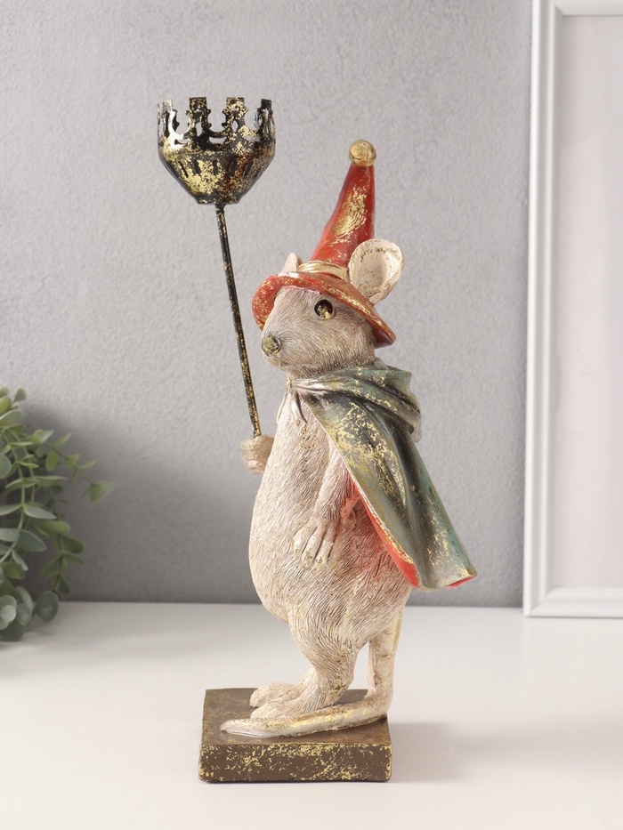 Сувенир полистоун подсвечник "Мышонок-волшебник" 16х18,5х32 см