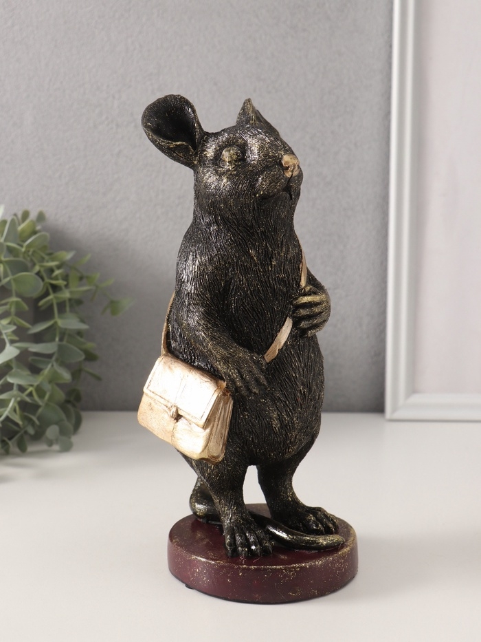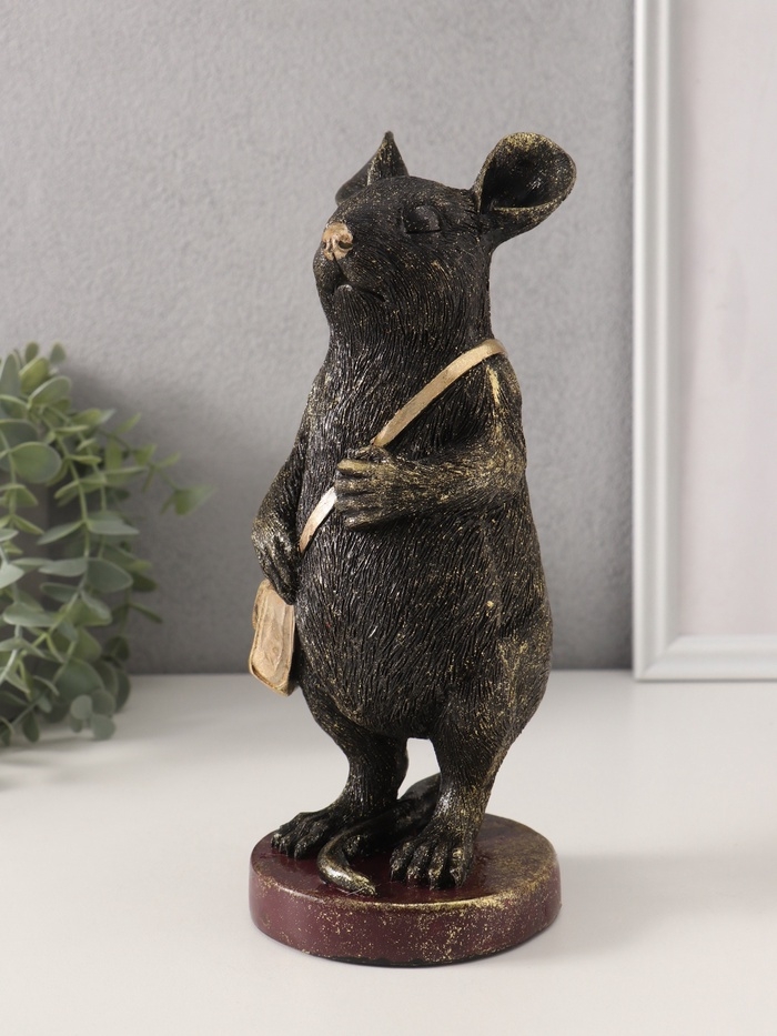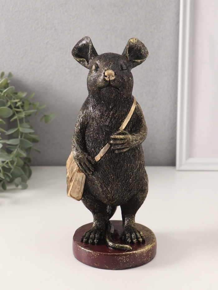 Сувенир полистоун "Мышонок-почтальон с сумкой через плечо" 10,5х12,5х27,5 см
