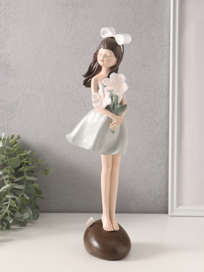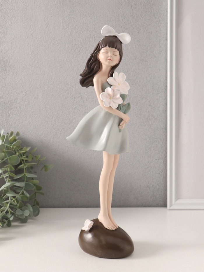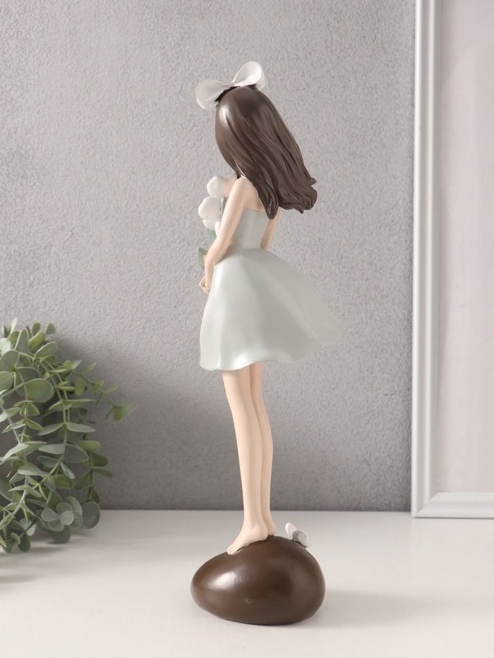 Сувенир полистоун "Девушка с белыми цветами в руках" 9,2х9,1х33,8 см
