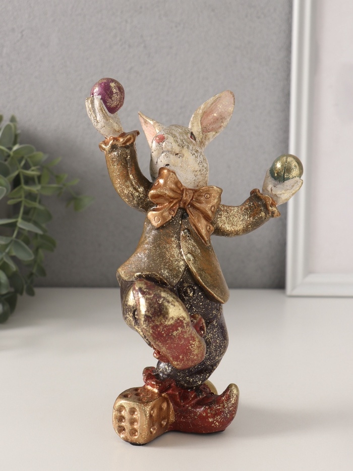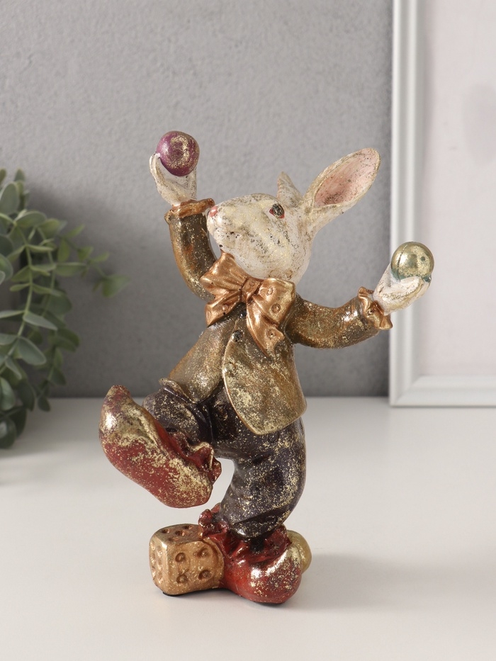 Сувенир полистоун "Цирковой кролик-жонглёр" 12,5х15х20 см