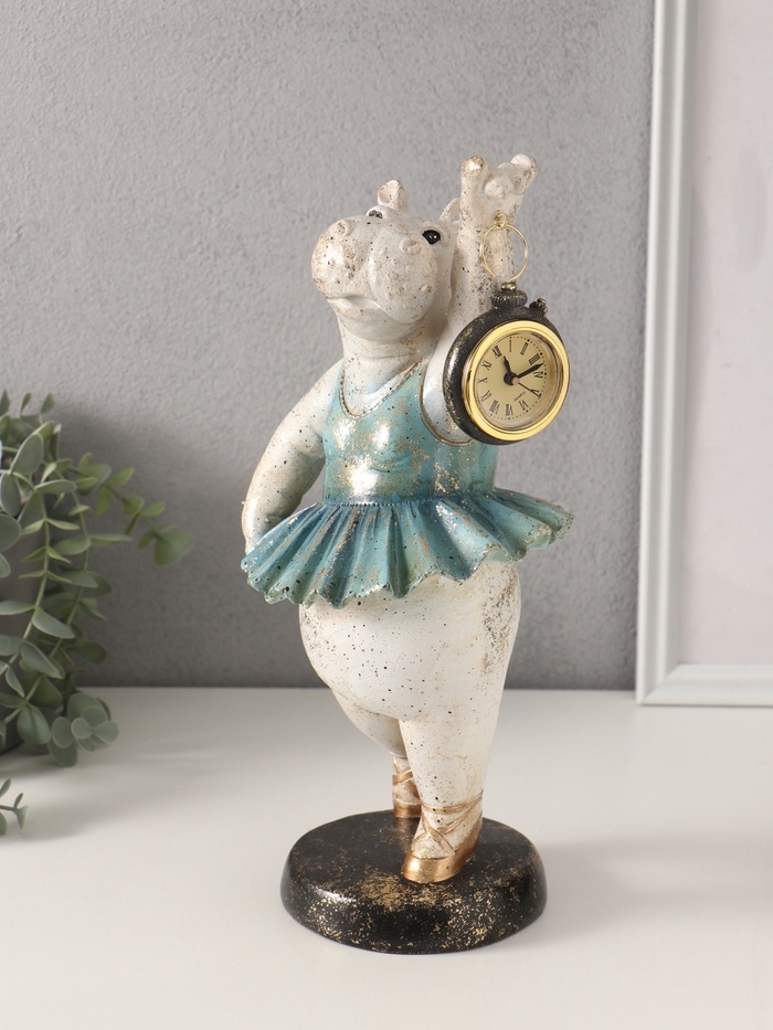 Сувенир полистоун с часами "Бегемот-балерина" 13,5х15х32,5 см