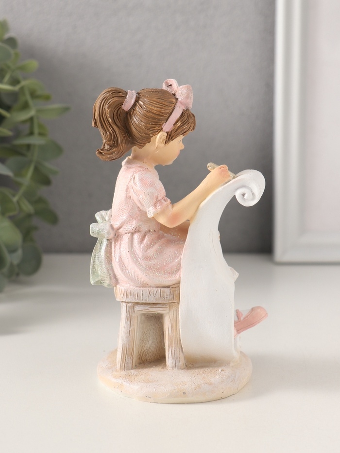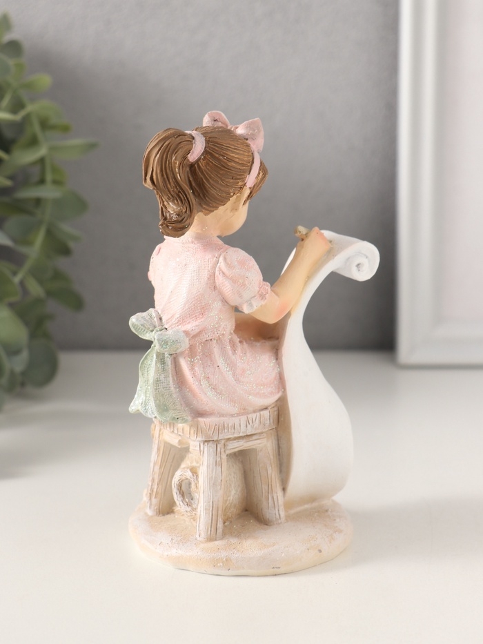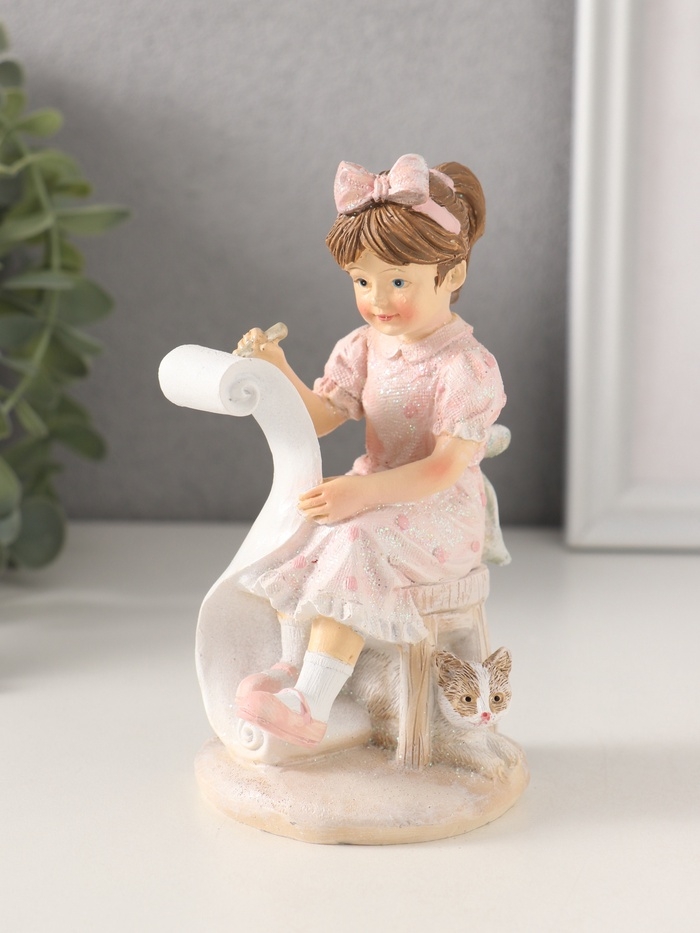 Сувенир полистоун "Девочка рисует, с котиком" розовый 7,5х7х13 см
