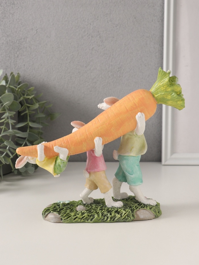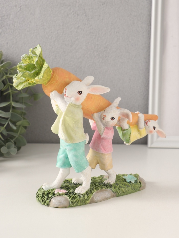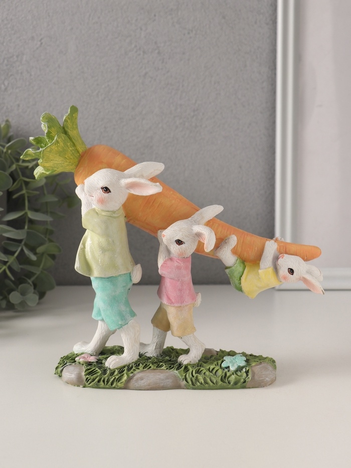 Сувенир полистоун "Зайчата несут большую морковь" 19,5х6,5х18 см