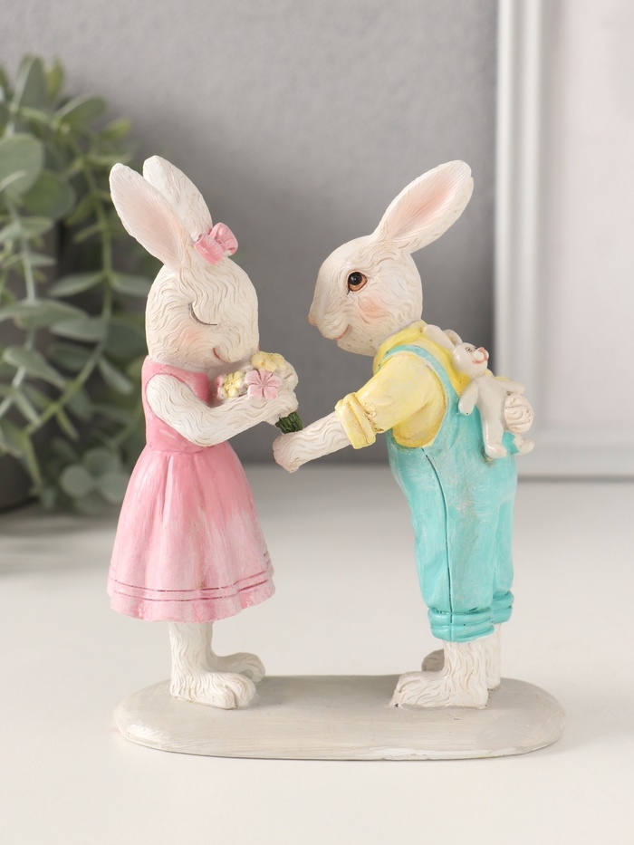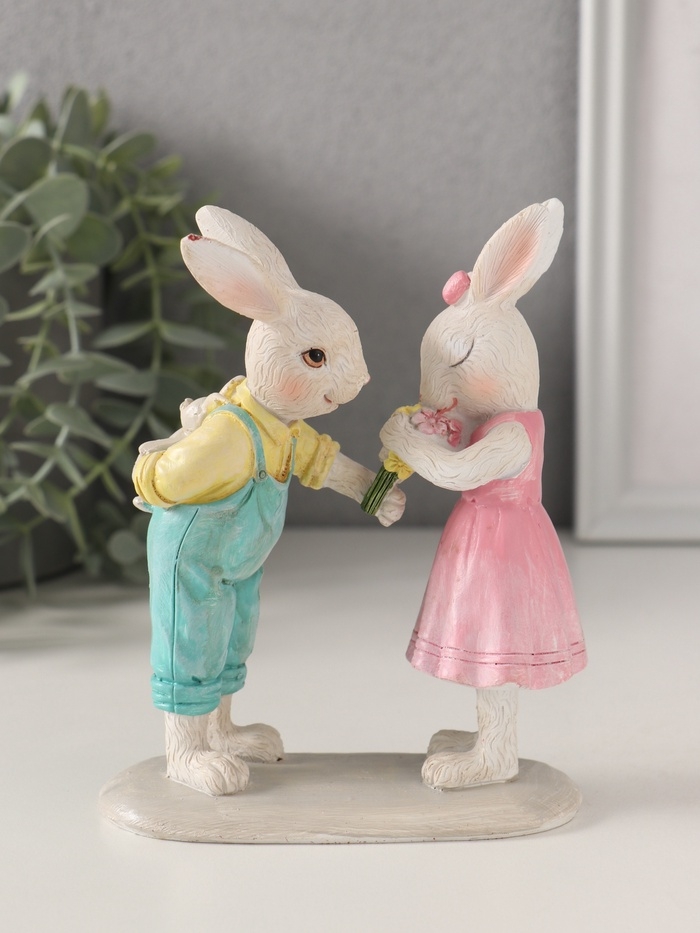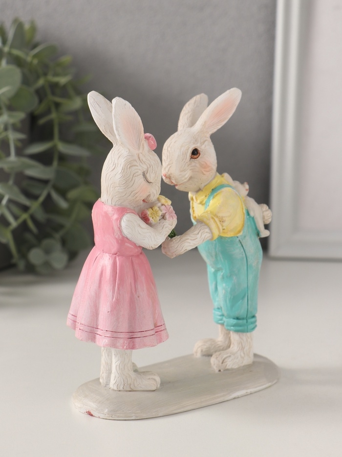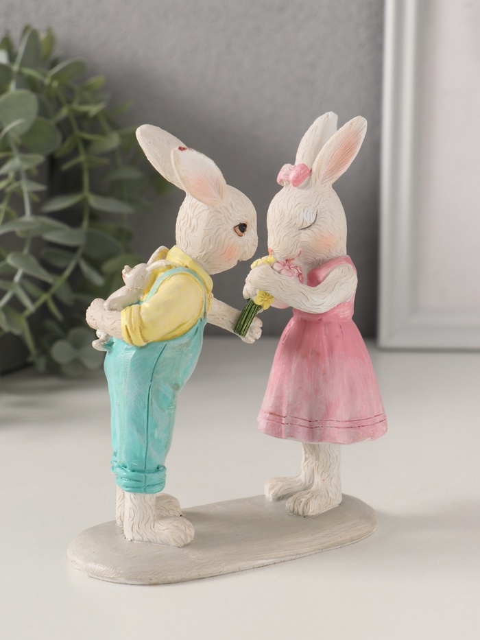 Сувенир полистоун "Зайчата. Первое свидание" 11х5х14 см