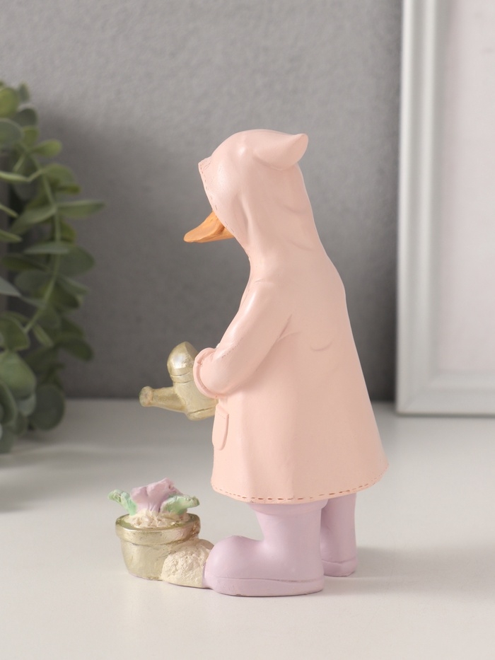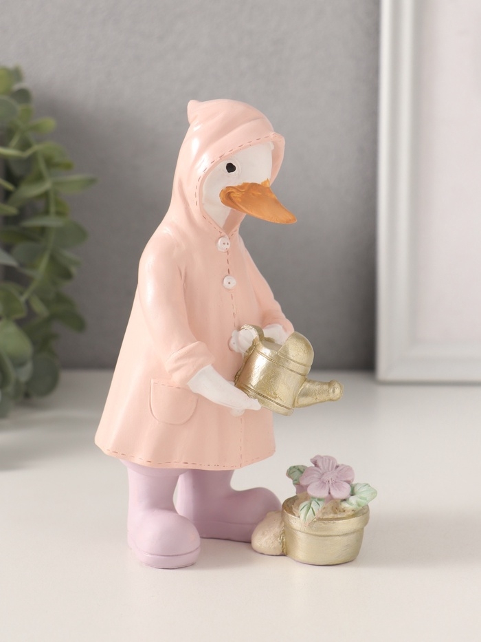 Сувенир полистоун "Утка в дождевике поливает цветок из лейки" 9,5х6х14,5 см