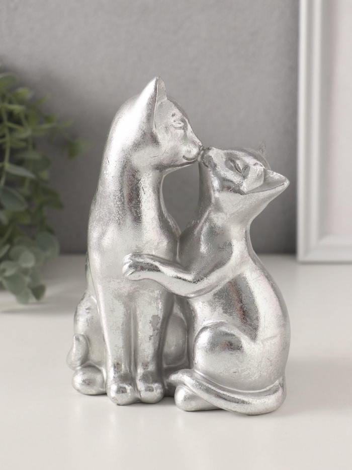 Сувенир полистоун "Кот с кошкой. Поцелуй" серебро 12х7,5х16 см
