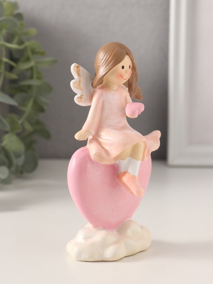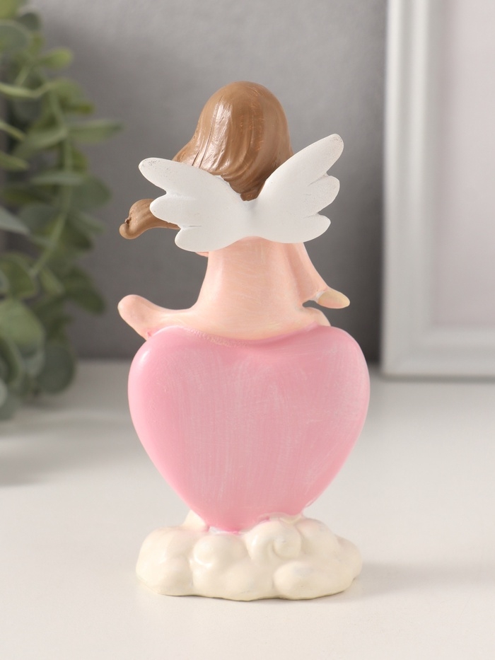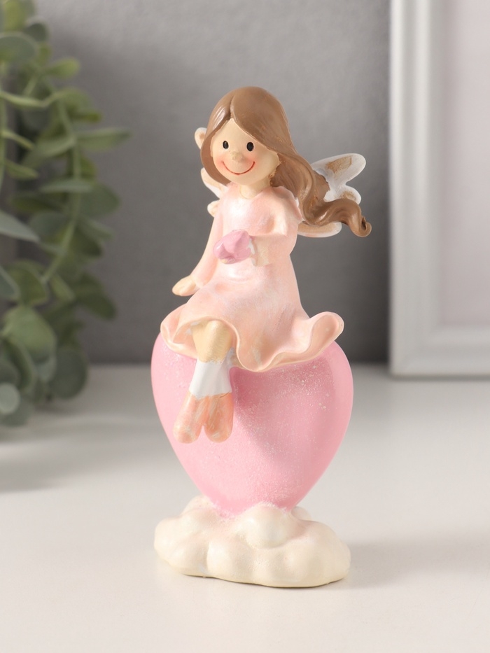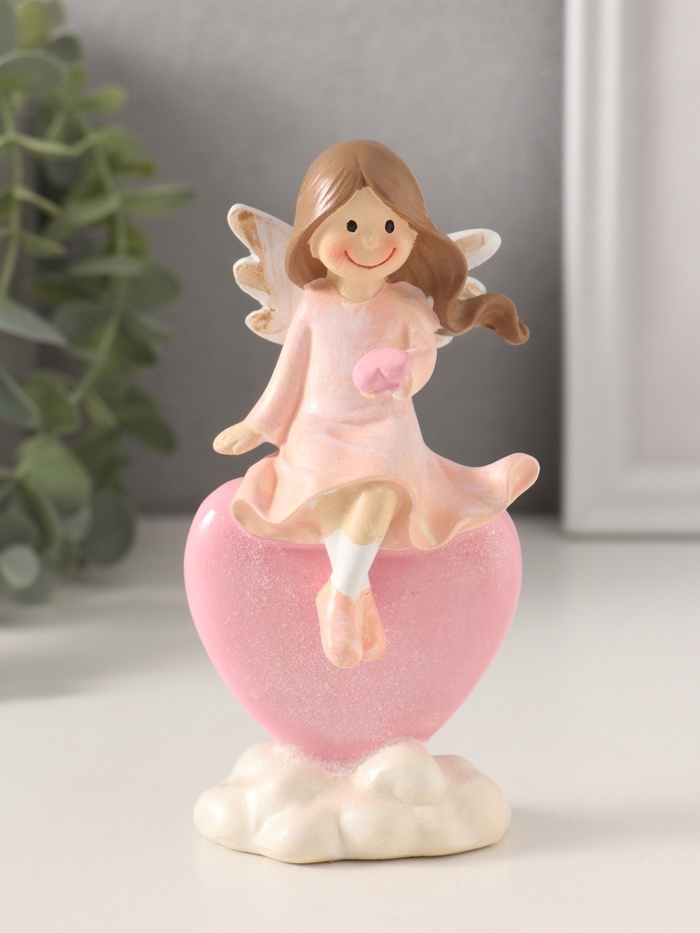 Сувенир полистоун "Малышка-ангел в розовом платье сидит на большом сердце" 6,5х5х13 см