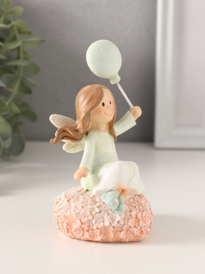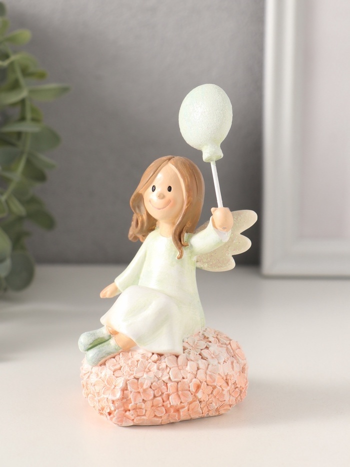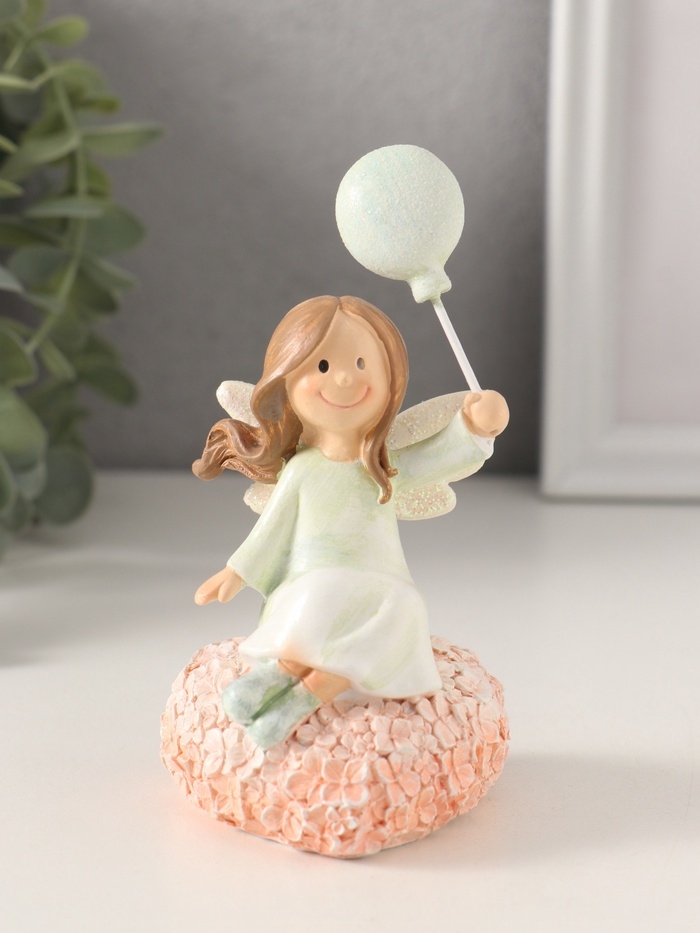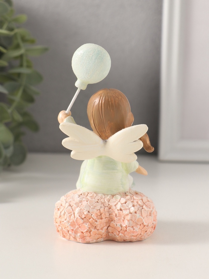 Сувенир полистоун "Малышка-ангел с шариком на цветочном сердце" 6,5х6,5х13 см