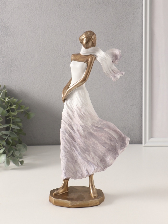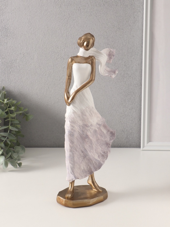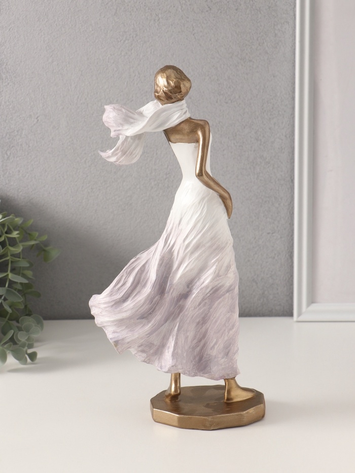 Сувенир полистоун "Девушка в платье с шарфом. Ветер" 16х9,5х33 см