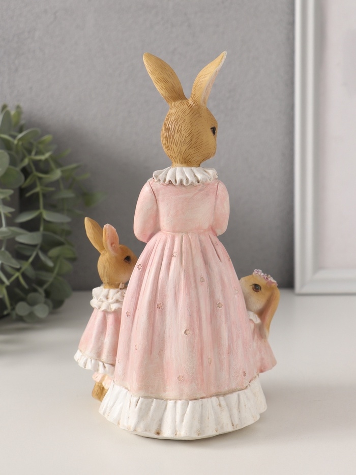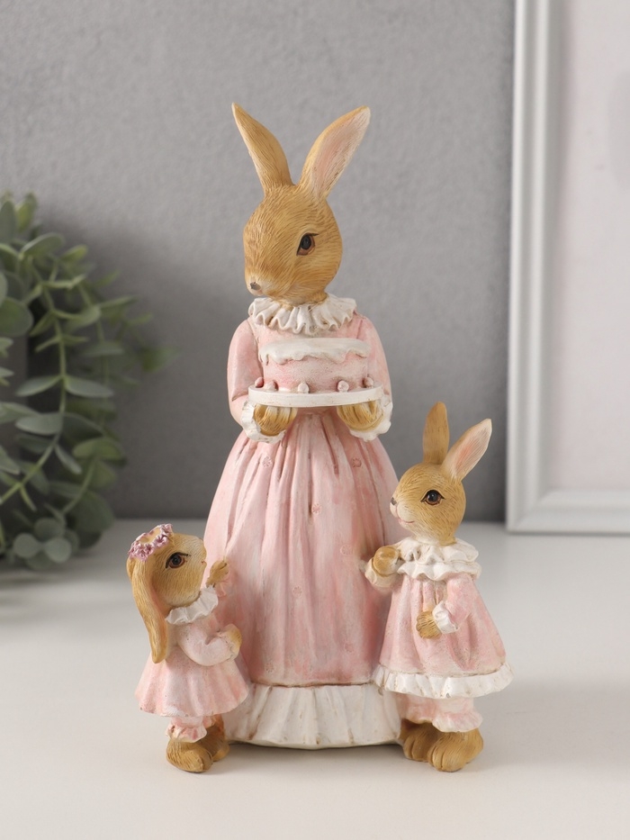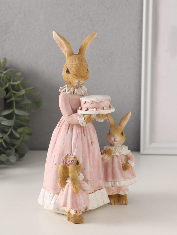 Сувенир полистоун "Мама зайка с дочками - именнинный торт" розовый 12,5х9,5х20,5 см