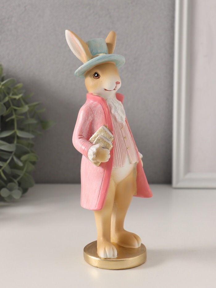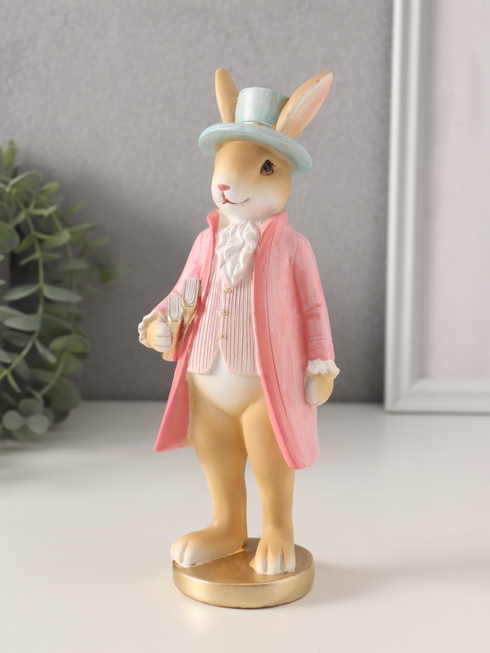 Сувенир полистоун "Заяц в розовом камзоле и голубой шляпе" 7,5х6х20,5 см