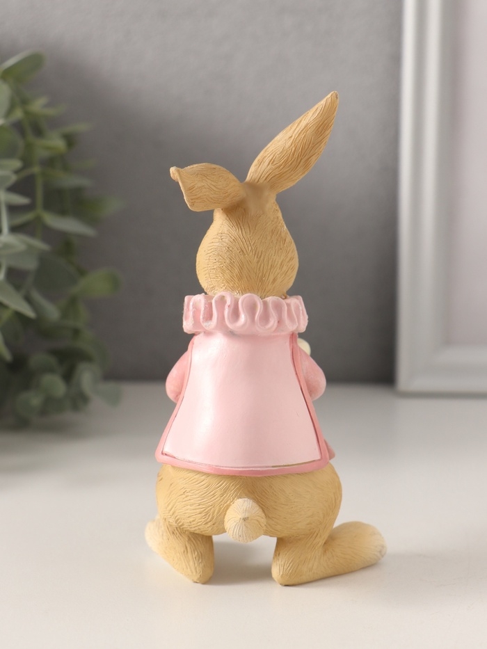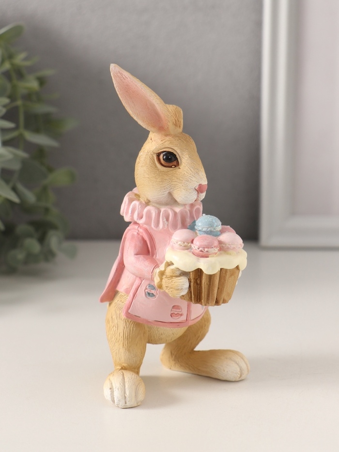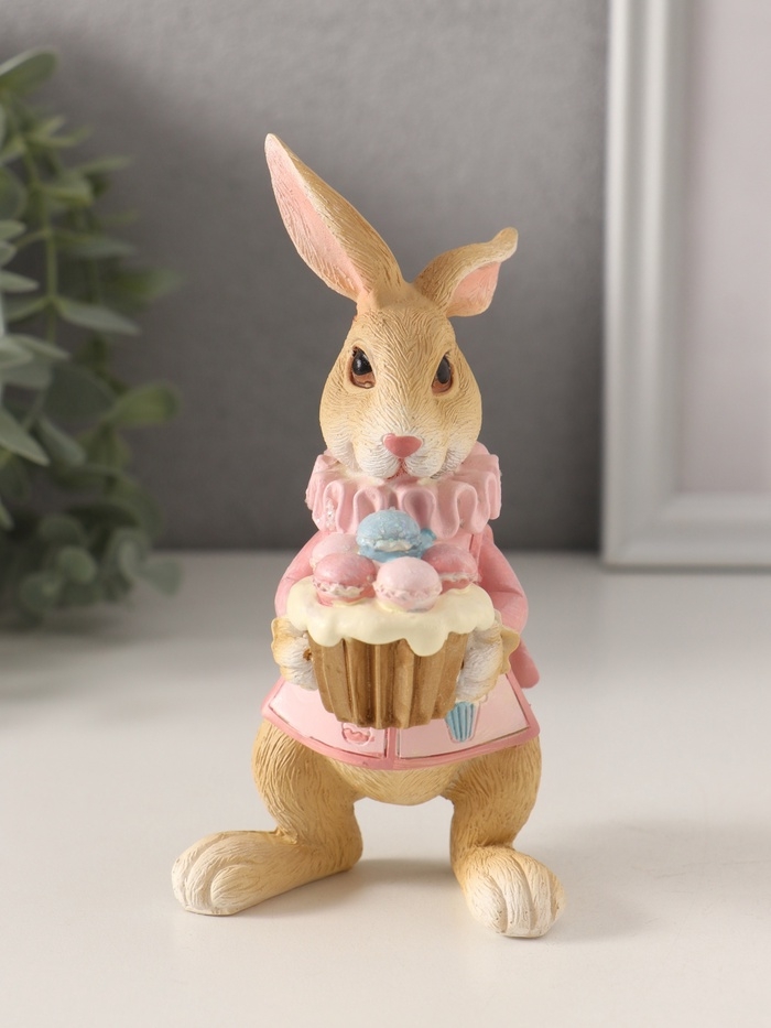 Сувенир полистоун "Заяц с кексом с макарунами, в розовом" 8х7х13,5 см