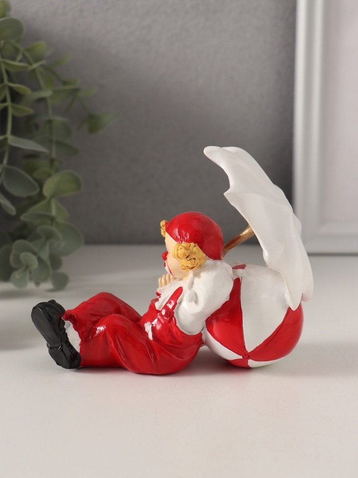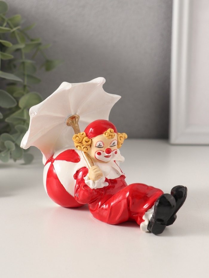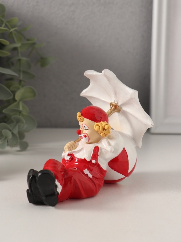 Сувенир полистоун "Клоун с зонтом и мячиком" бело-красный 11,5х7,5х9 см