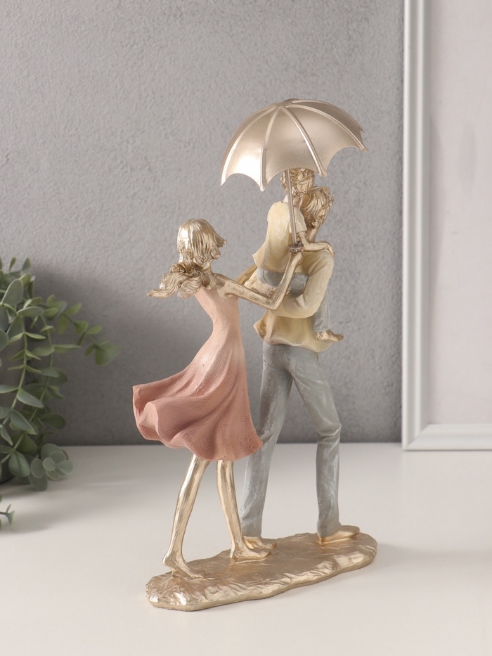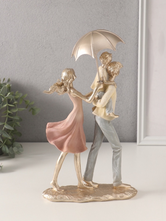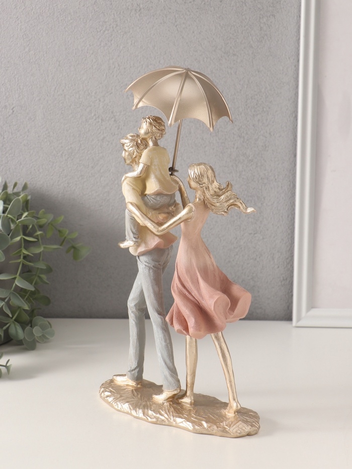 Сувенир полистоун "Папа, мама, я - прогулка под зонтом" жёлто-розовый 17,5х8,5х27/31 см
