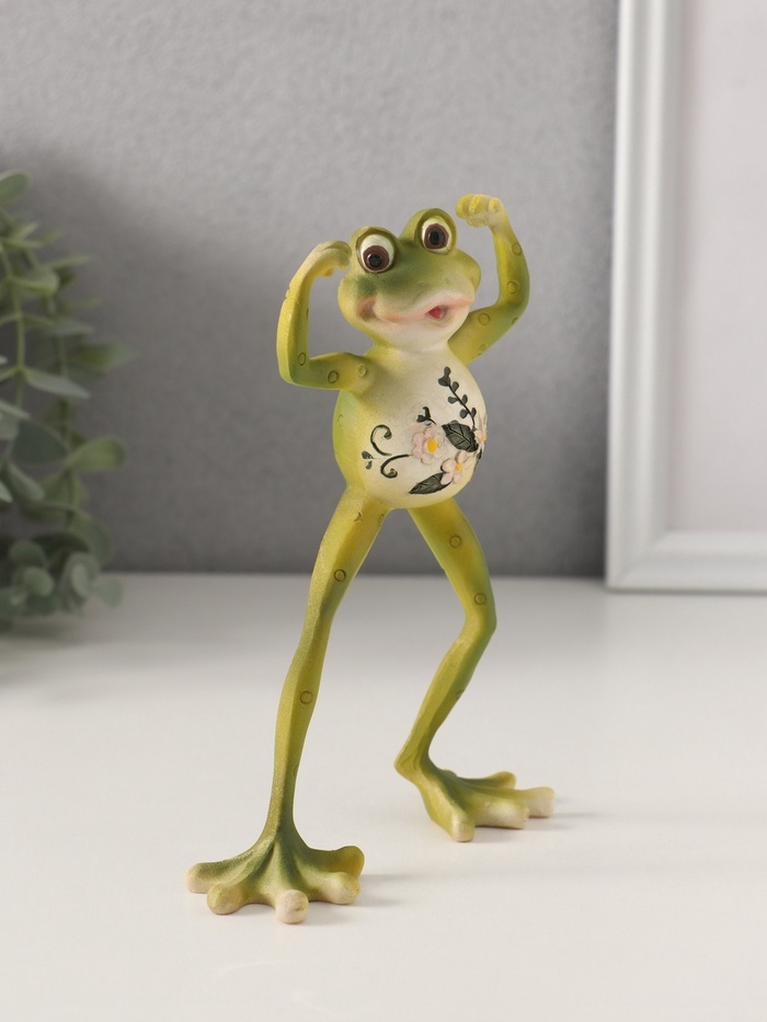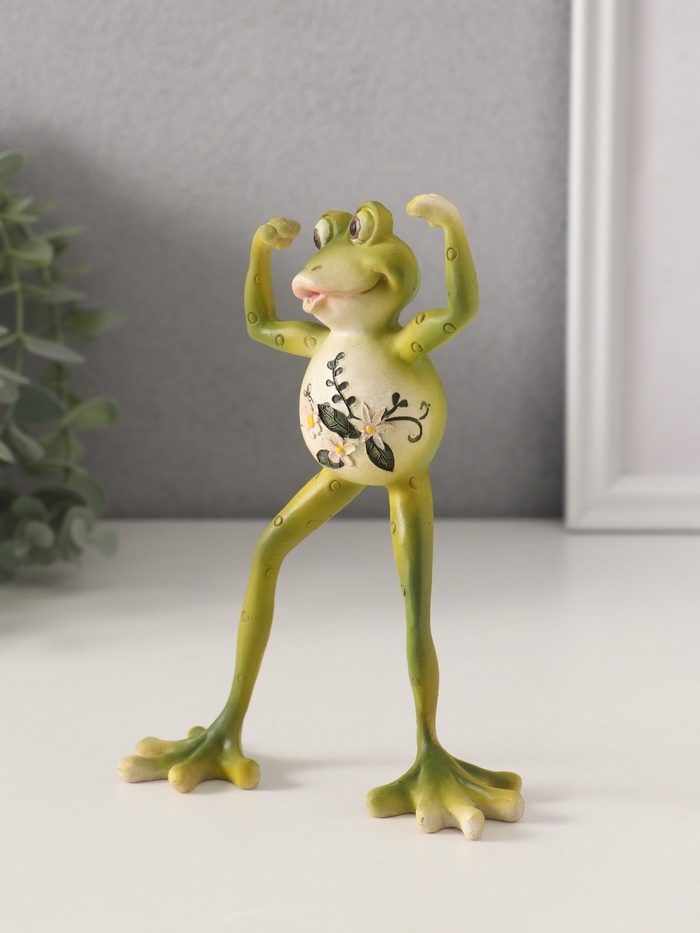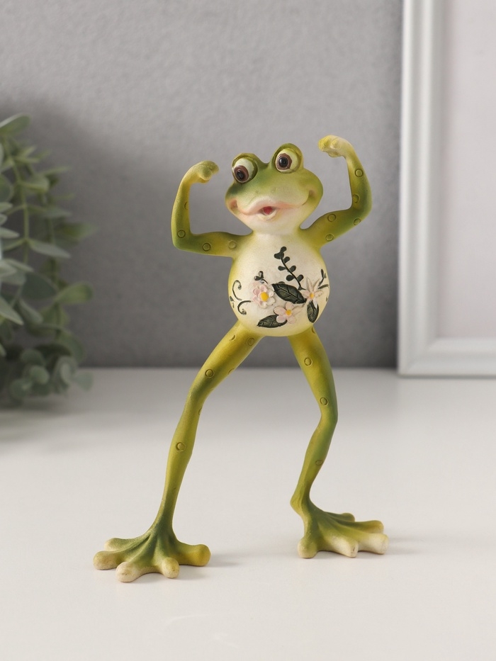 Сувенир полистоун "Лягушонок-силач, с цветами на животике" 11,5х3,5х16 см