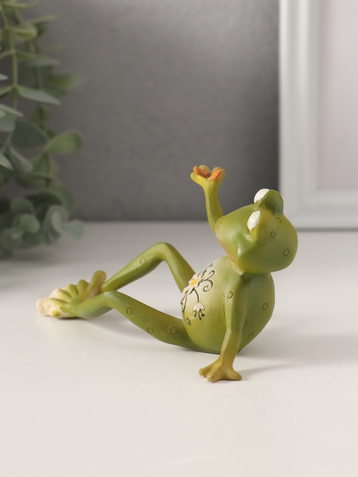 Сувенир полистоун "Лягушонок - смотри, что у меня есть" 15,5х6х7 см