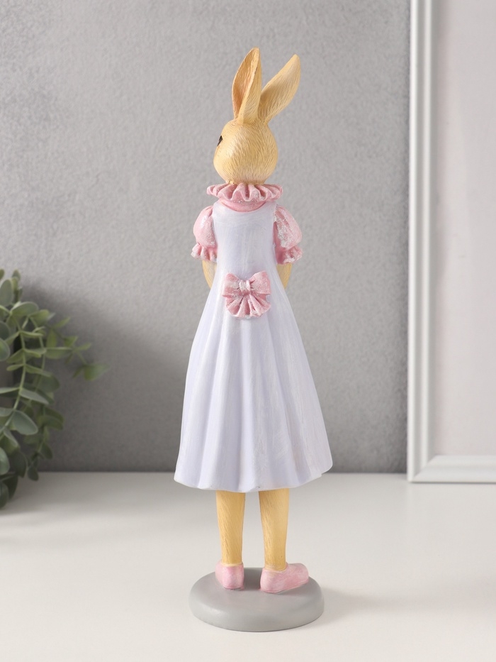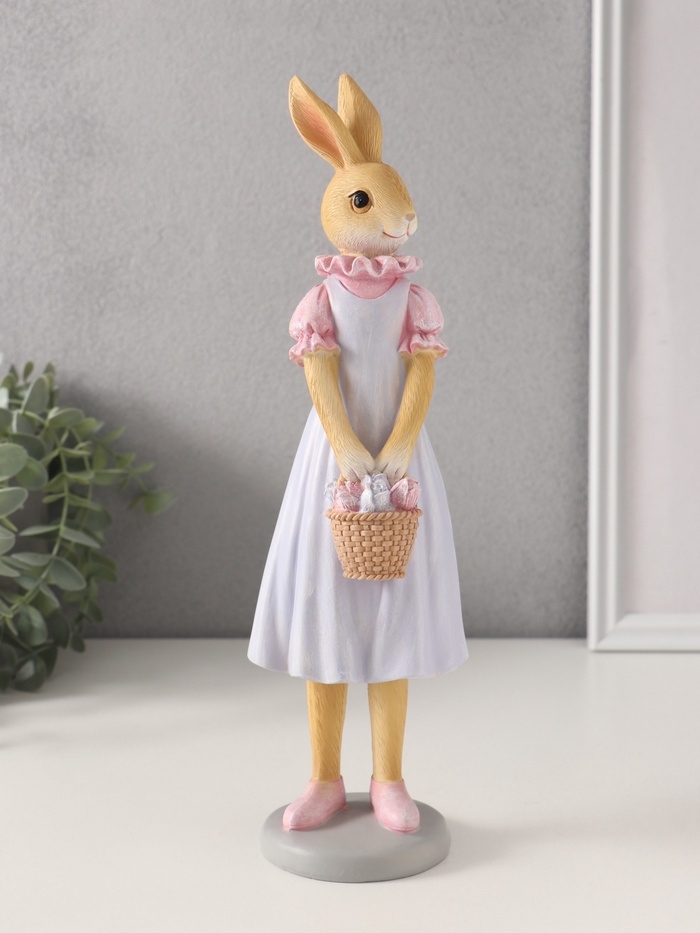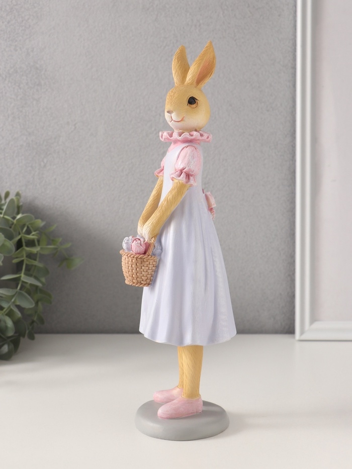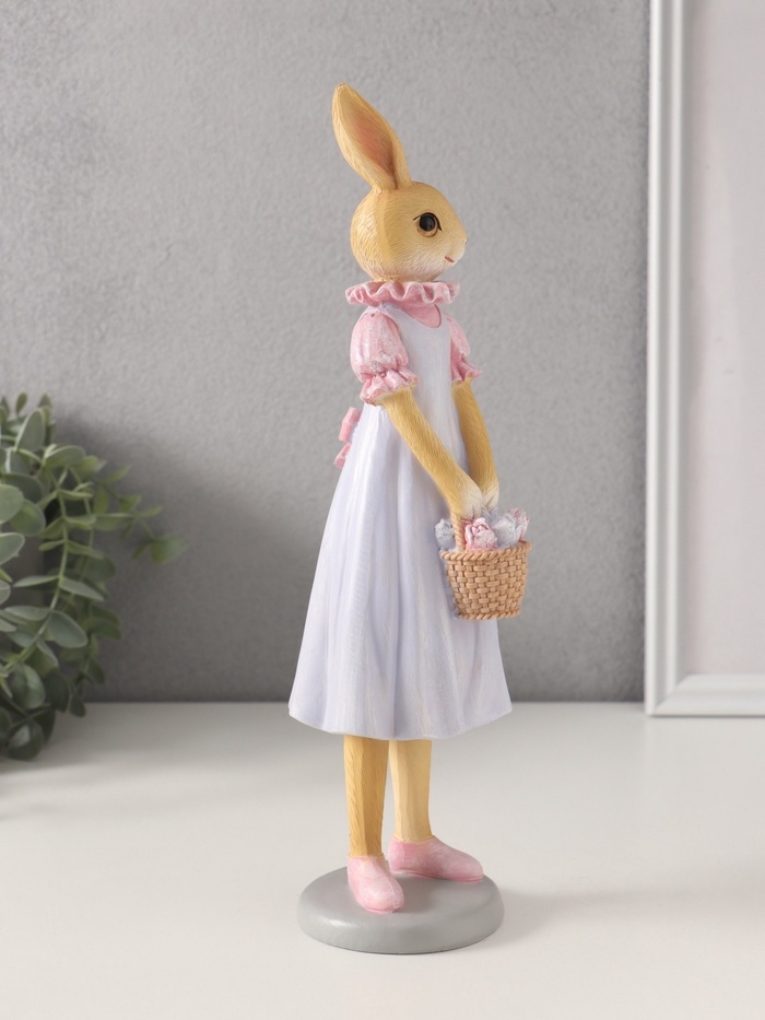 Сувенир полистоун "Зайка в сиреневом сарафане, с корзинкой цветов" 8,5х8х28,5 см