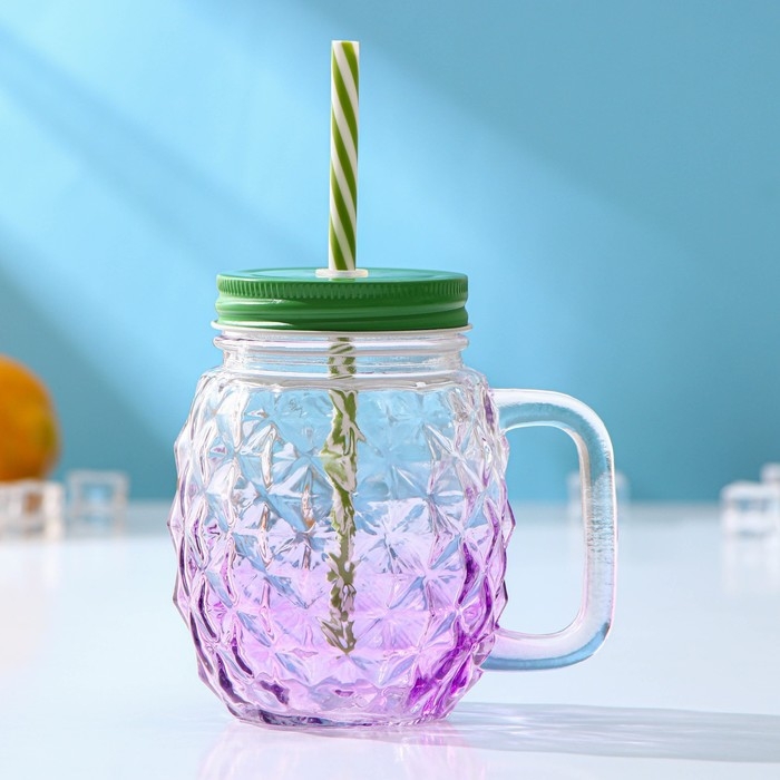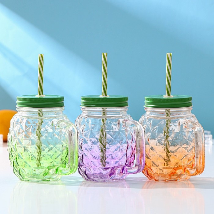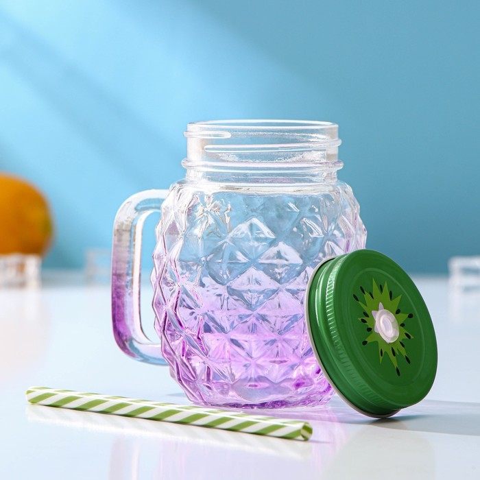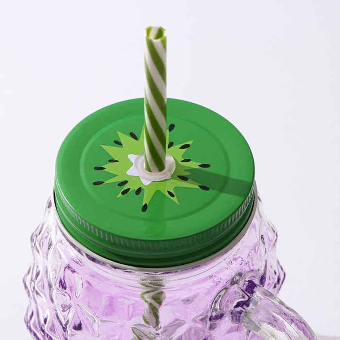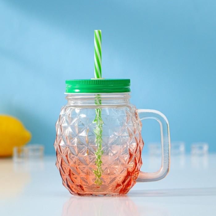 Банка стеклянная с крышкой и трубочкой Доляна «Ананас», 500 мл, 12,5×9,5×13 см, цвет МИКС