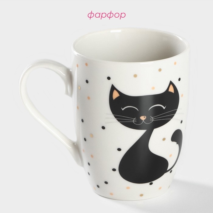 Кружка Доляна «Котик», 350 мл, фарфор, цвет белый