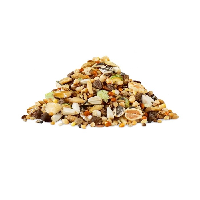 Состав: Просо белое, просо желтое, сорго белое, гранулы мультизерновые, гречиха, канареечное семя, просо красное, луговое разнотравье, сафлор, пайза, ячмень, ячмень плющеный, паникум желтый, овсянка, лен, пшеница воздушная, ячмень воздушный, семена подсолнечника, горох плющеныный, расторопша, кабачок сушеный, нуг, полезные семена, перилла, кунжут, инулин, экстракт юкки.