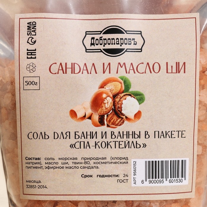 Соль для бани и ванны "Сандал и масло ШИ" 500 гр Добропаровъ