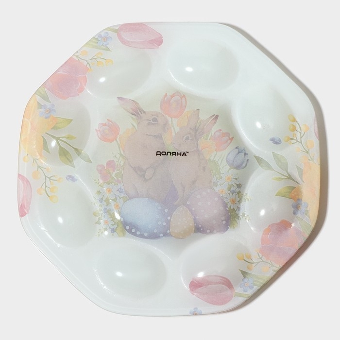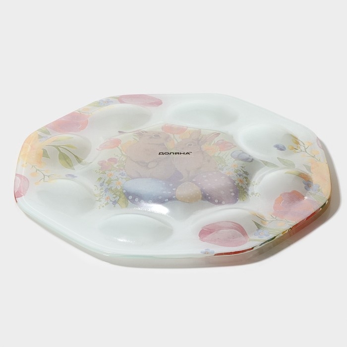 Подставка стеклянная для яиц Доляна «Акварель», 8 ячеек, 22×22 см, цвет белый