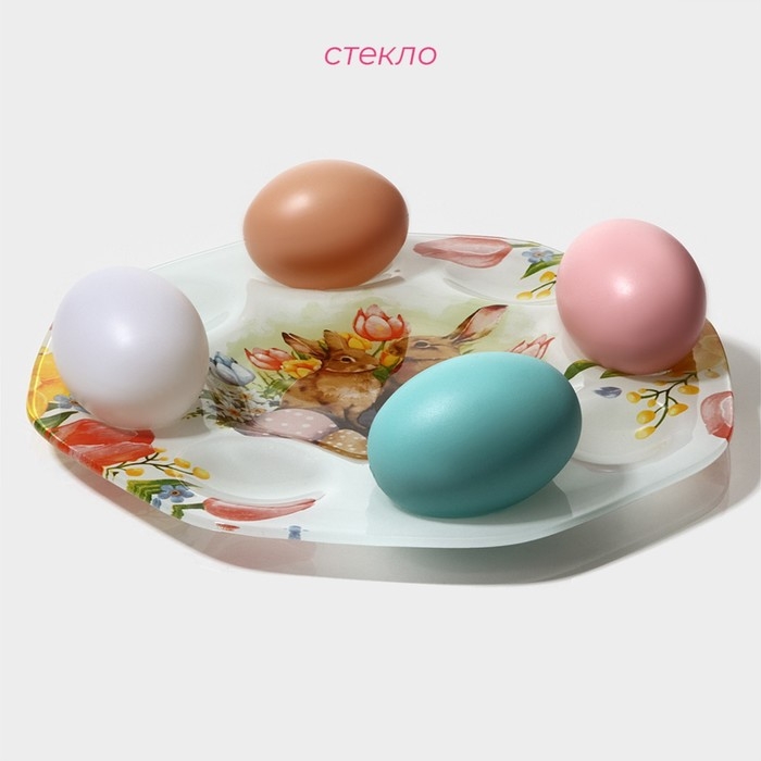 Подставка для яиц станет оригинальным решением для сервировки во время пасхальных торжеств и других пышных праздников. Посуда изготовлена из стекла и украшена тематическим рисунком. Классический дизайн изделия делает его гармоничным дополнением к любому варианту оформления стола.
