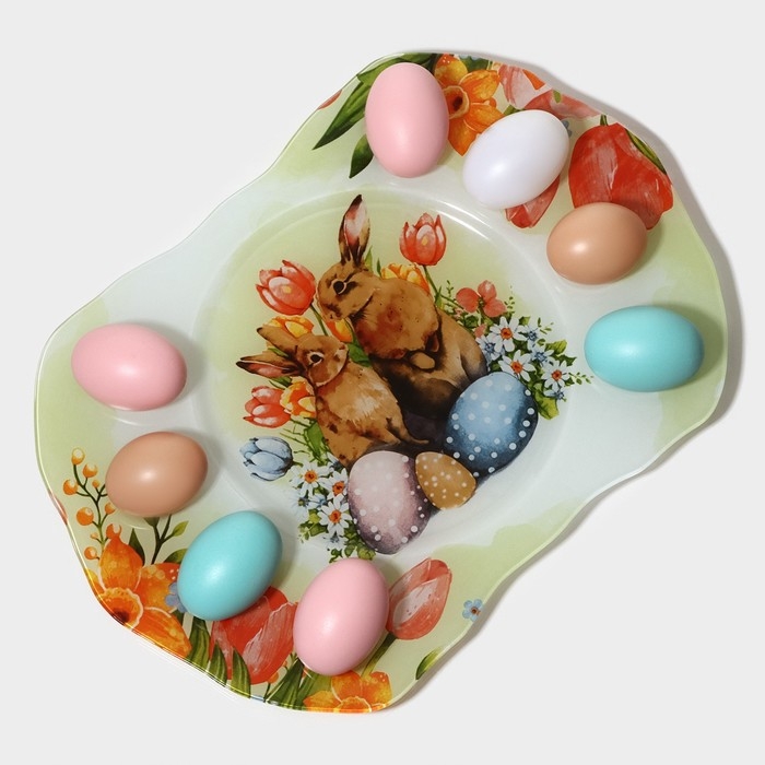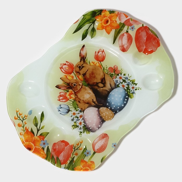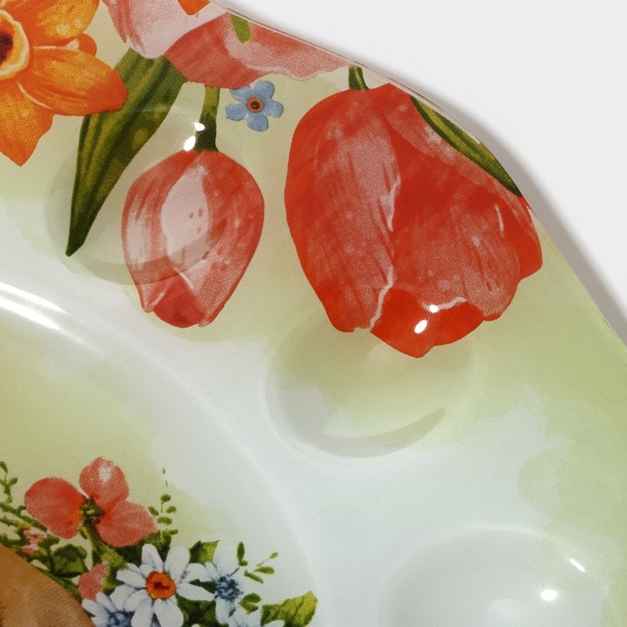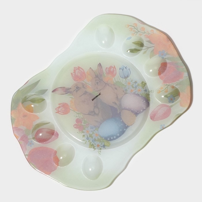 Подставка для яиц станет оригинальным решением для сервировки во время пасхальных торжеств и других пышных праздников. Посуда изготовлена из стекла и украшена тематическим рисунком. Классический дизайн изделия делает его гармоничным дополнением к любому варианту оформления стола.