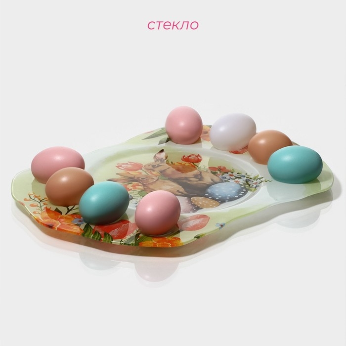 Подставка стеклянная для яиц Доляна «Акварель», 8 ячеек, 38×27 см
