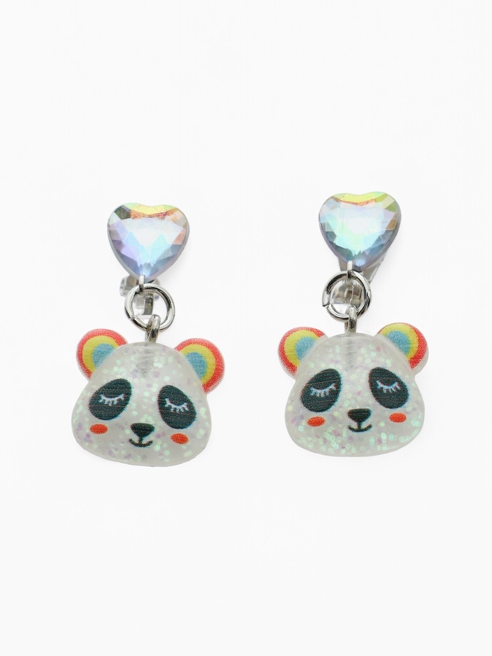 Серьги-клипсы детские "Выбражулька" панда с сердцем кристалл, цветные