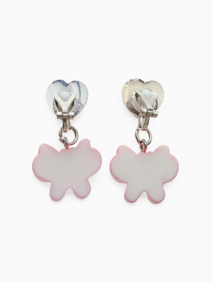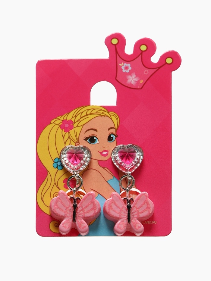 Серьги-клипсы детские "Выбражулька" бабочка драгоценность с сердцем кристалл, цвет розовый