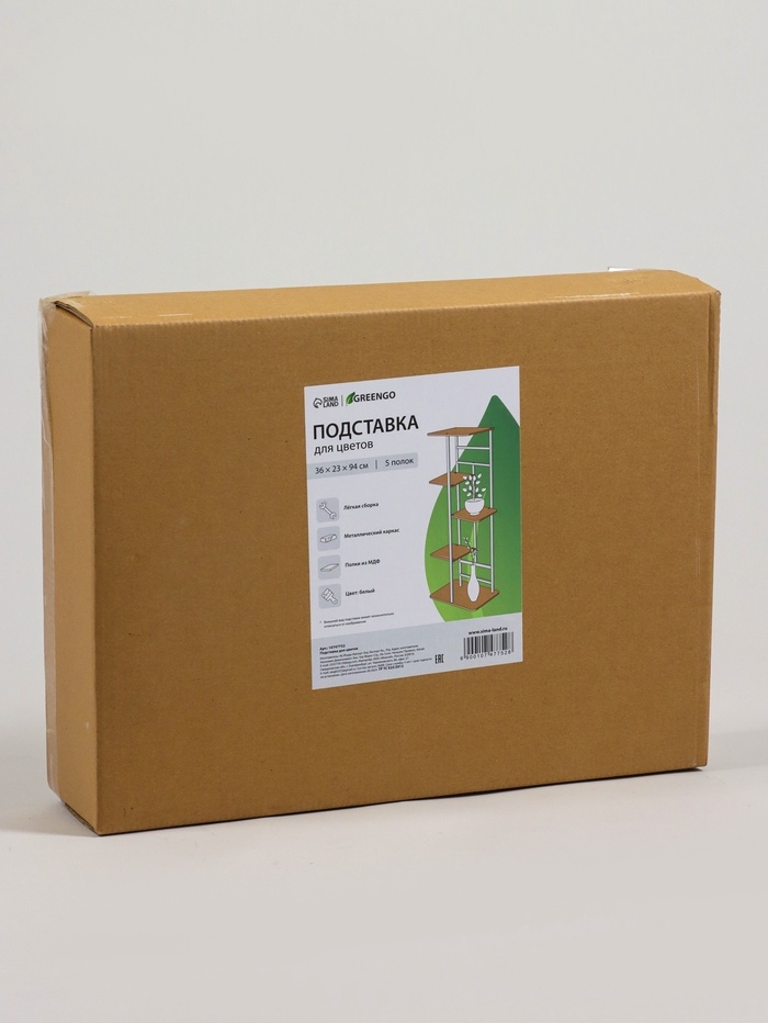 Подставка для цветов Greengo, 5 полок, 36 × 23 × 94 см, напольная, каркас металл, полки МДФ, белая