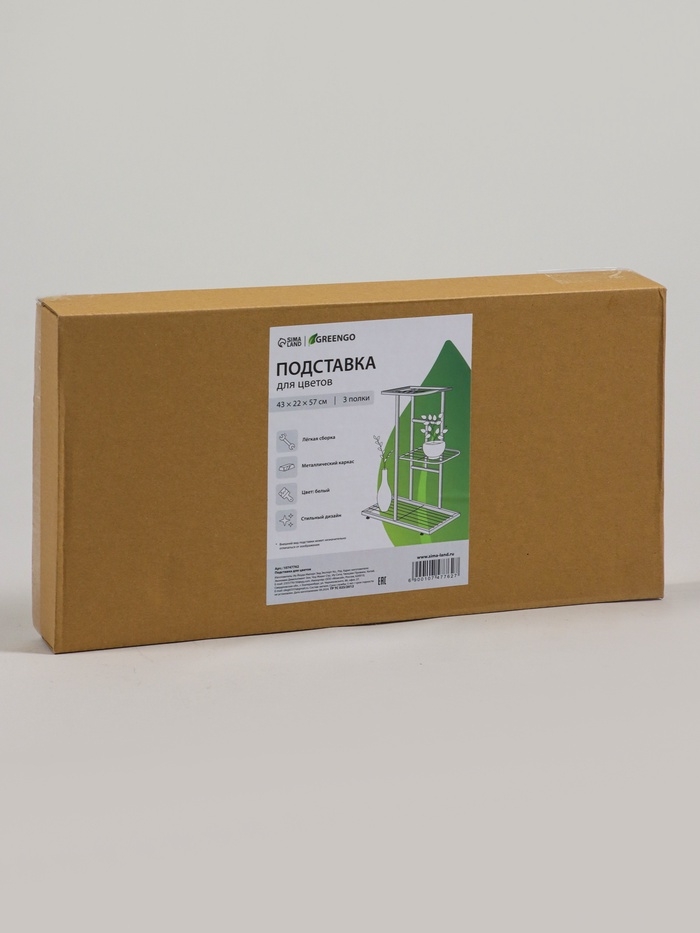 Подставка для цветов Greengo, 3 полки, 43 × 22 × 57 см, напольная, металл, белая