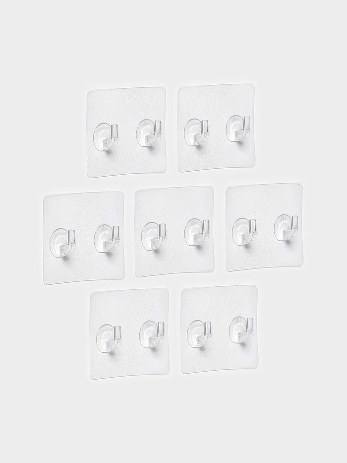 Крючки двойные самоклеящиеся настенные прозрачные, 5,6х5,6 см, 5 шт