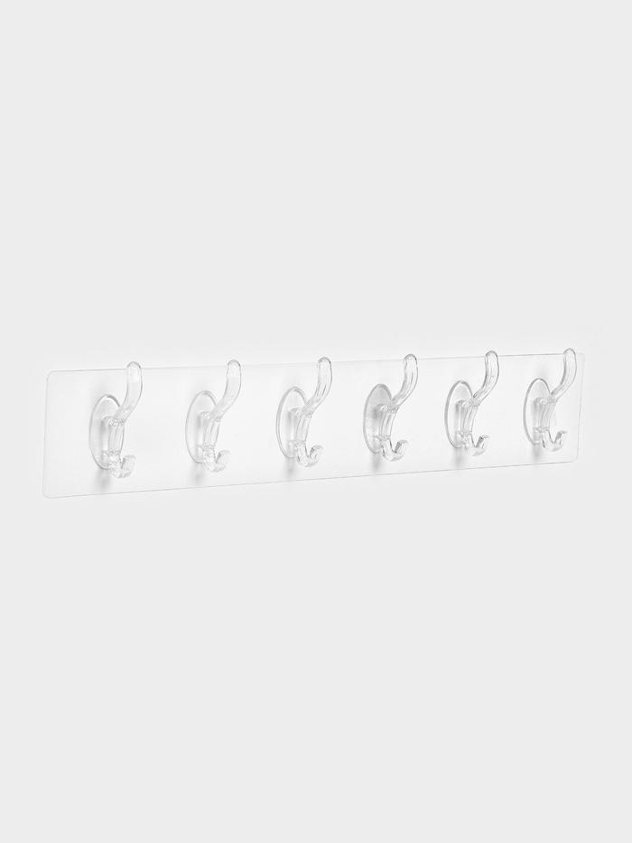 Крючки настенные самоклеящиеся, 6 крючков на общей гибкой прозрачной основе