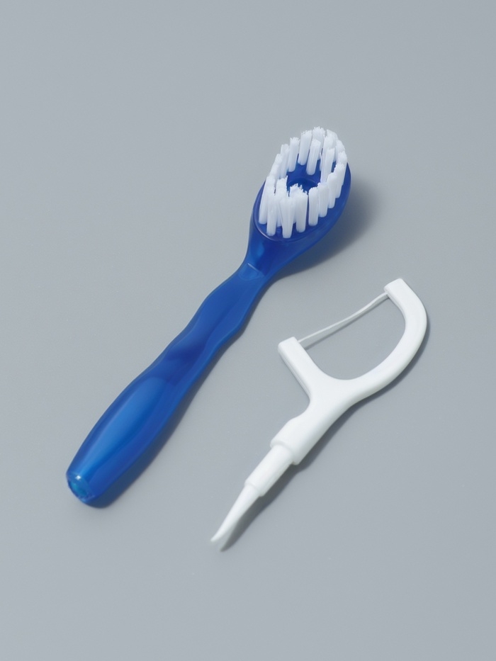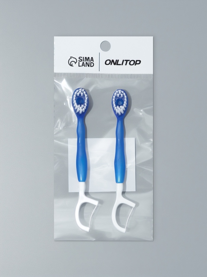 Зубная щетка с зубной нитью 10,5см (наб 2 шт цена за наб) пласт/нейлон синий накл ОТ