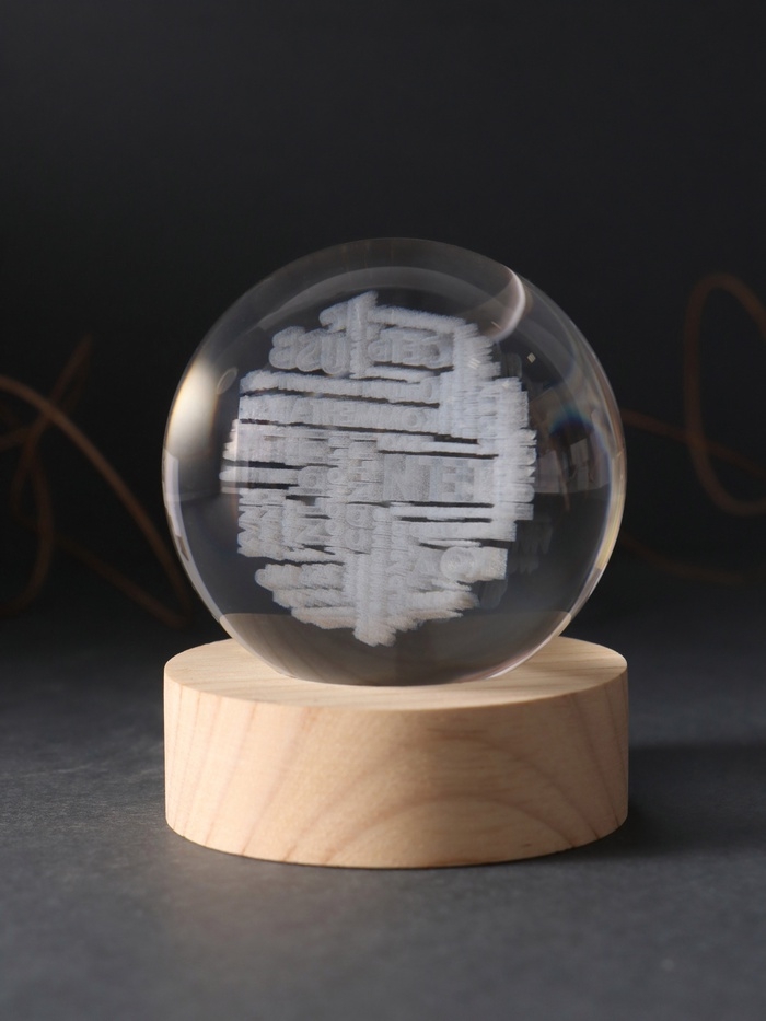 Сувенир стекло подсветка "Шар. Слова" d=6 см подставка дерево, USB