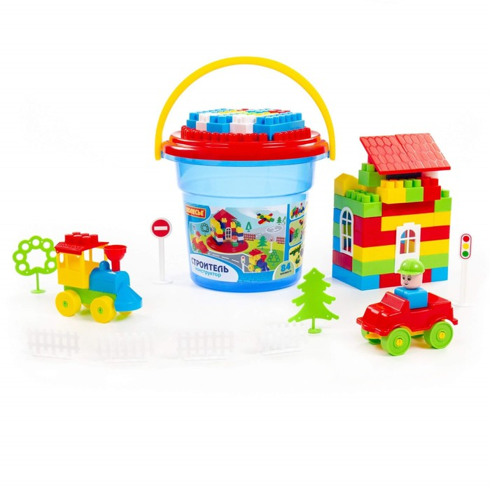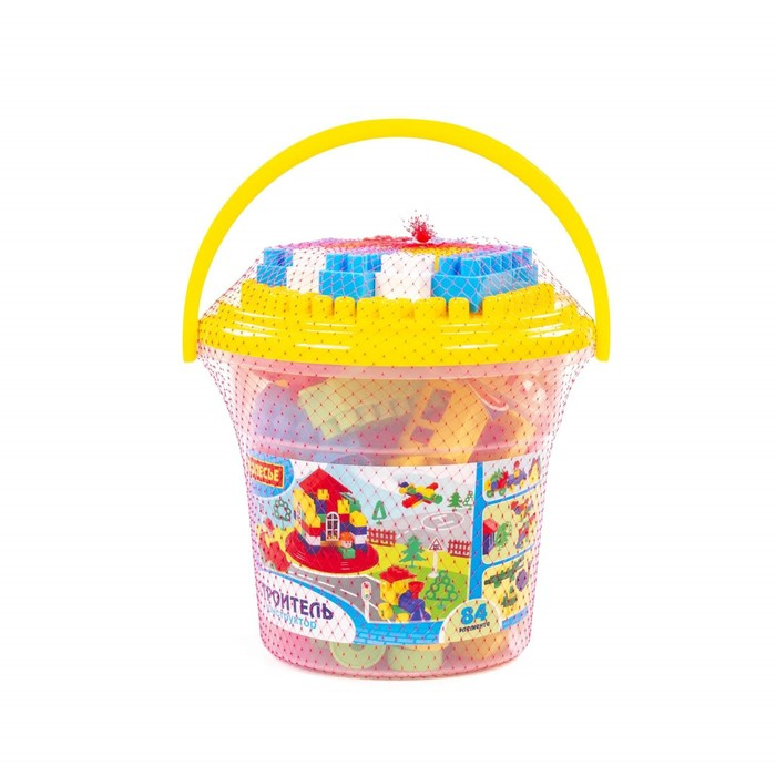 Конструктор «Строитель» 84 эл в ведре с крышкой