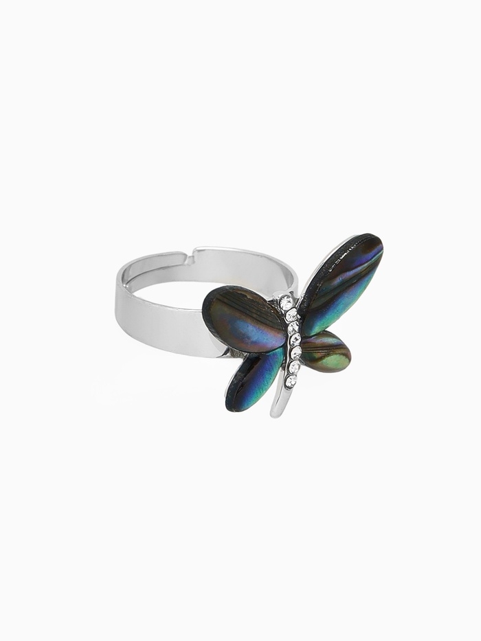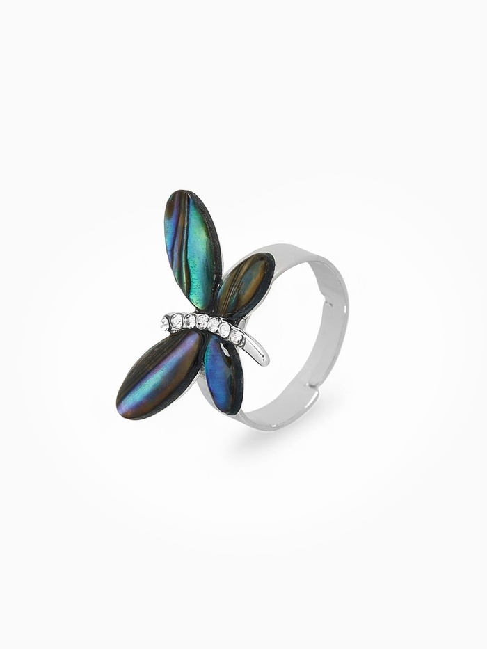 Кольцо безразмерное «Бабочка», галиотис, зелёное в серебре