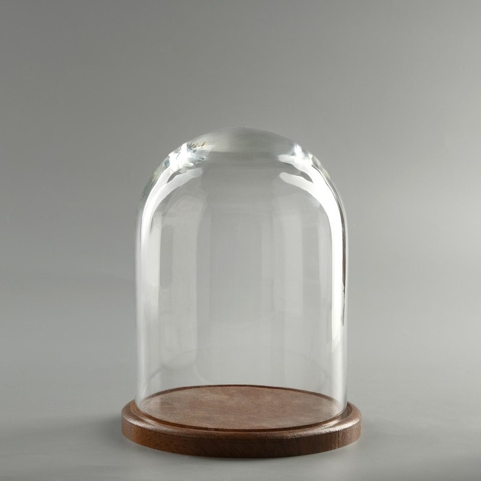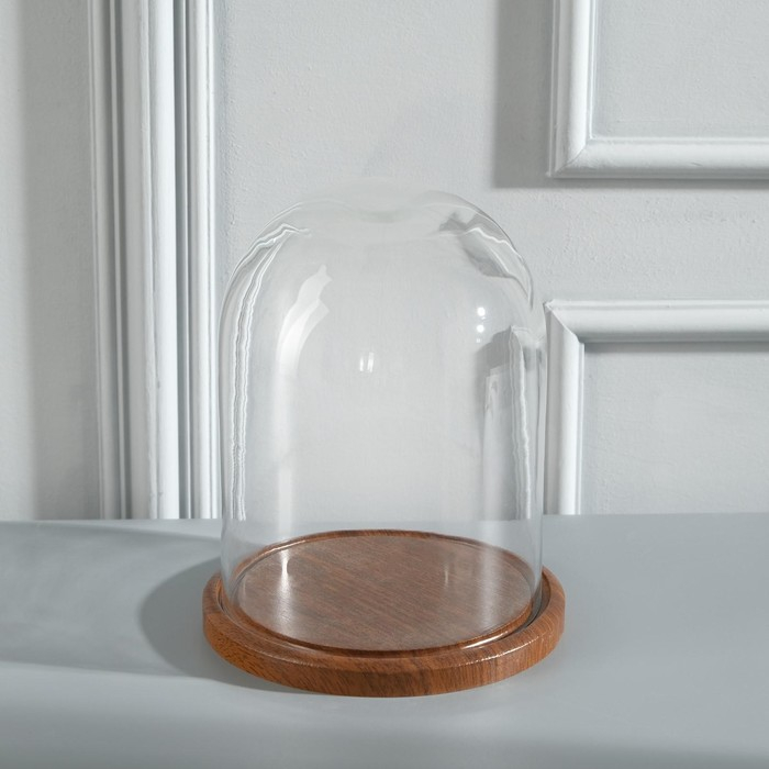 Стеклянный купол-клош на деревянной подставке "Венсан - 1", 20х15 см, коричневый