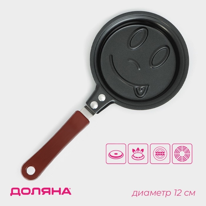 Сковорода Доляна «Улыбка», d=12 см, пластиковая ручка, антипригарное покрытие, цвет чёрный