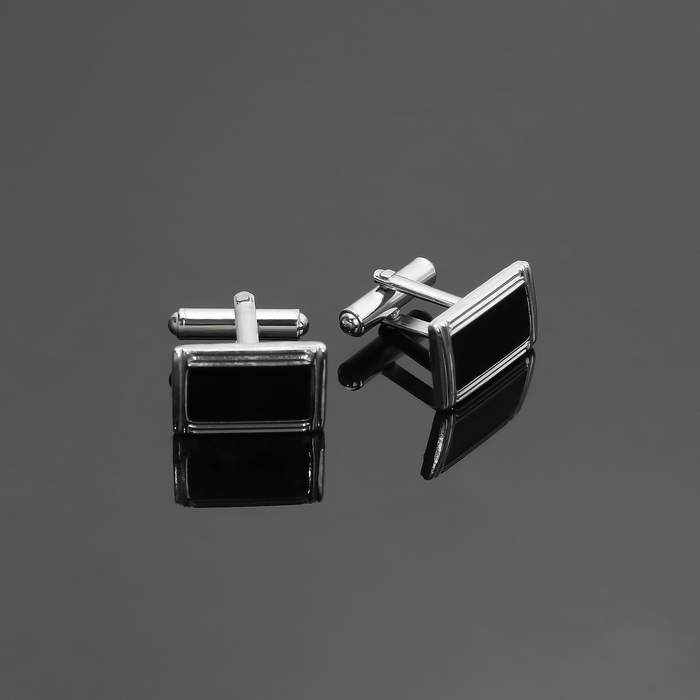 Запонки стальные «Прямоугольник» в рамке с эмалью, цвет чёрный в серебре