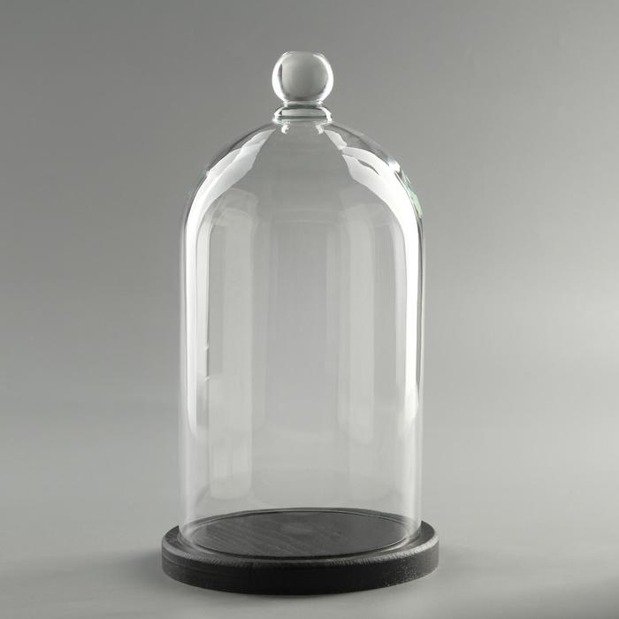 Стеклянный купол-клош с шариком на подставке "Родрик", 29х15 см, стекло, черный